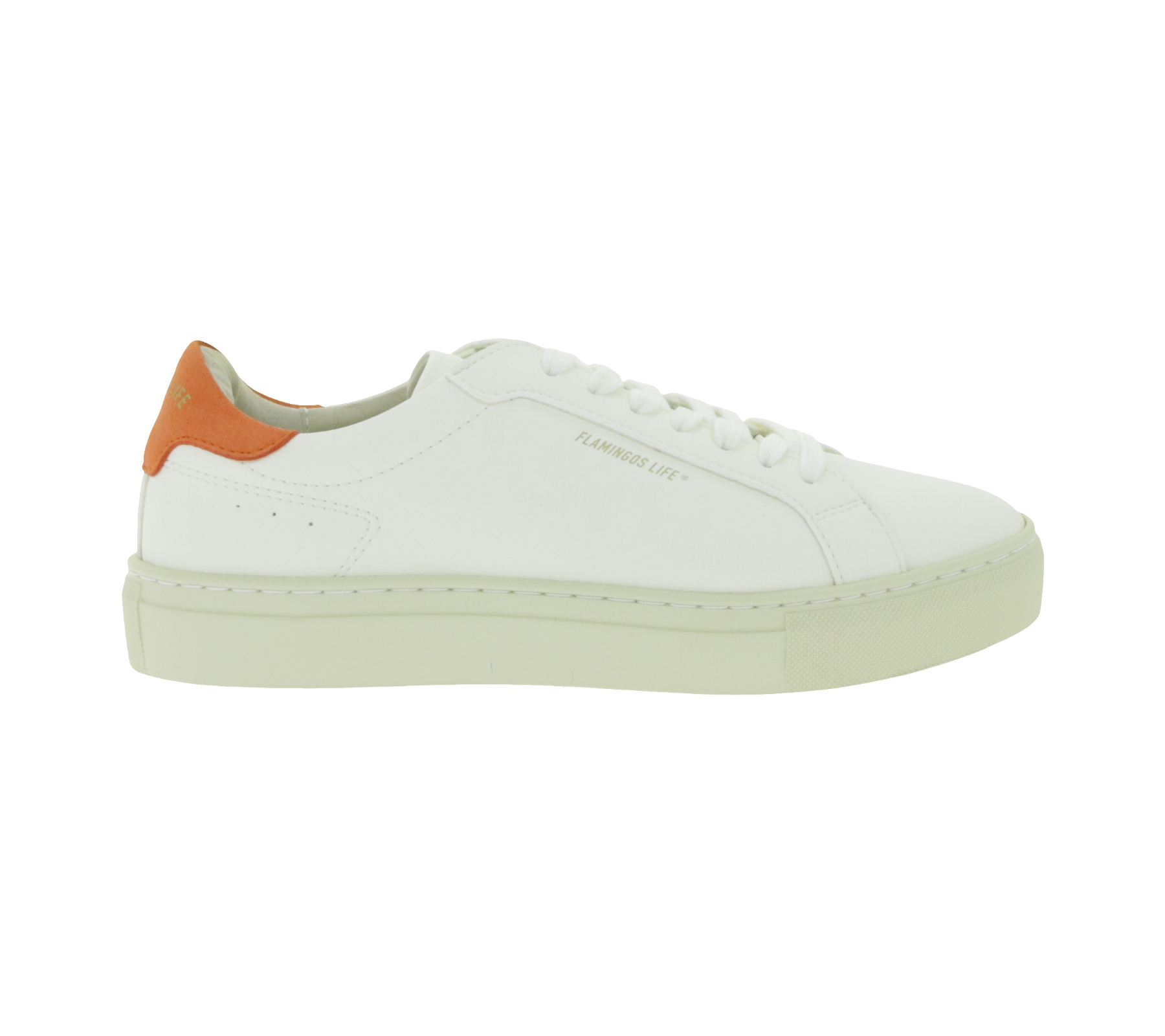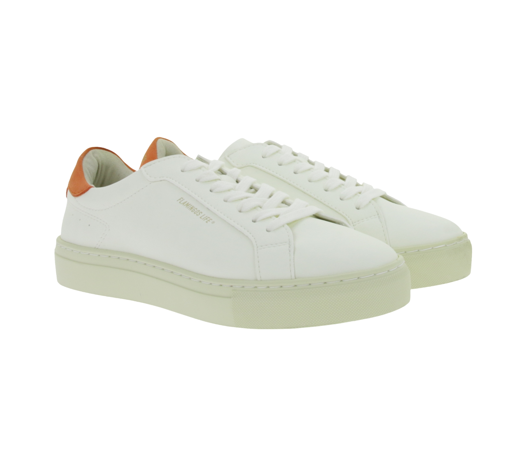 Scarpe da città sostenibili FLAMINGOS LIFE Hampton Court da donna, sneakers basse vegane, prodotte in Portogallo, bianco/arancione