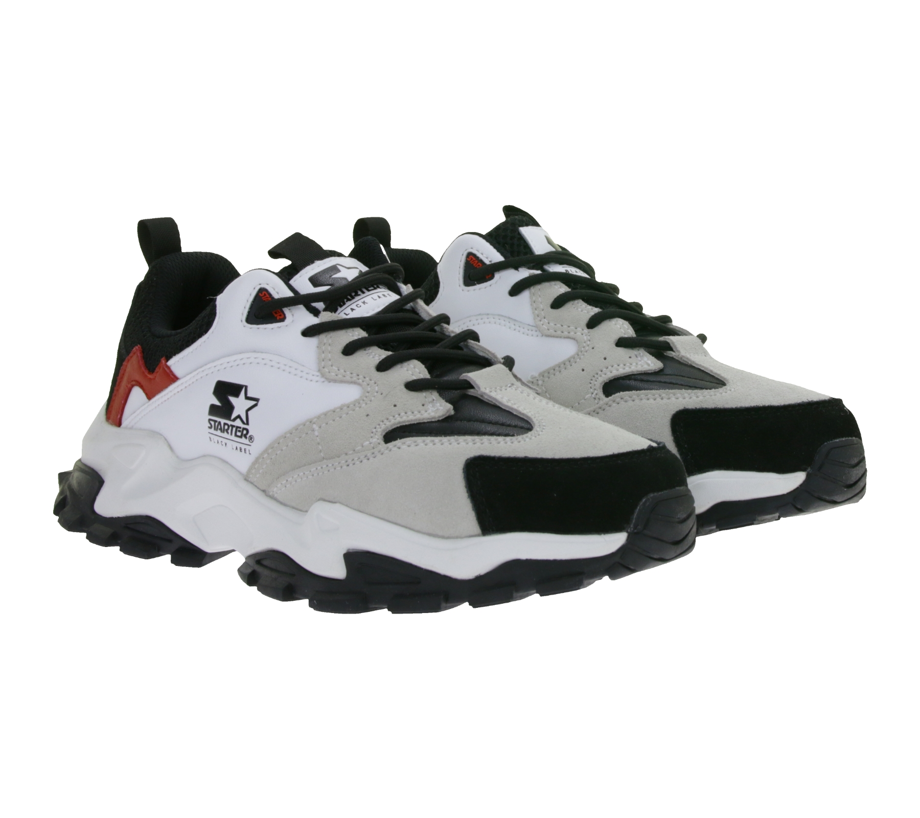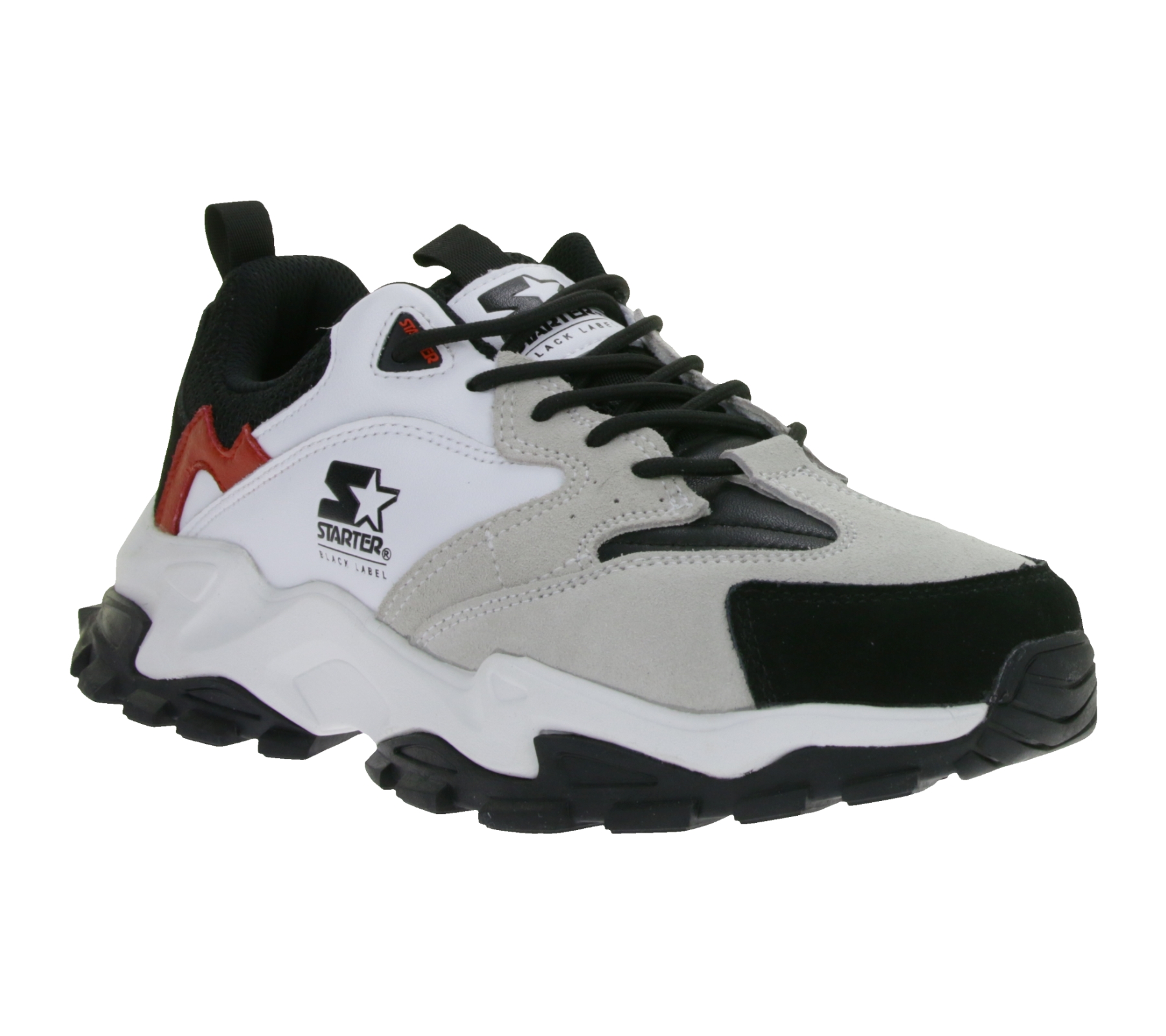 Sneakers da uomo STARTER Cape Coral stravaganti in vera pelle e camoscio - Sneakers retrò in stile anni '90 SMB103321 300 Bianco/Rosso/Nero/Grigio