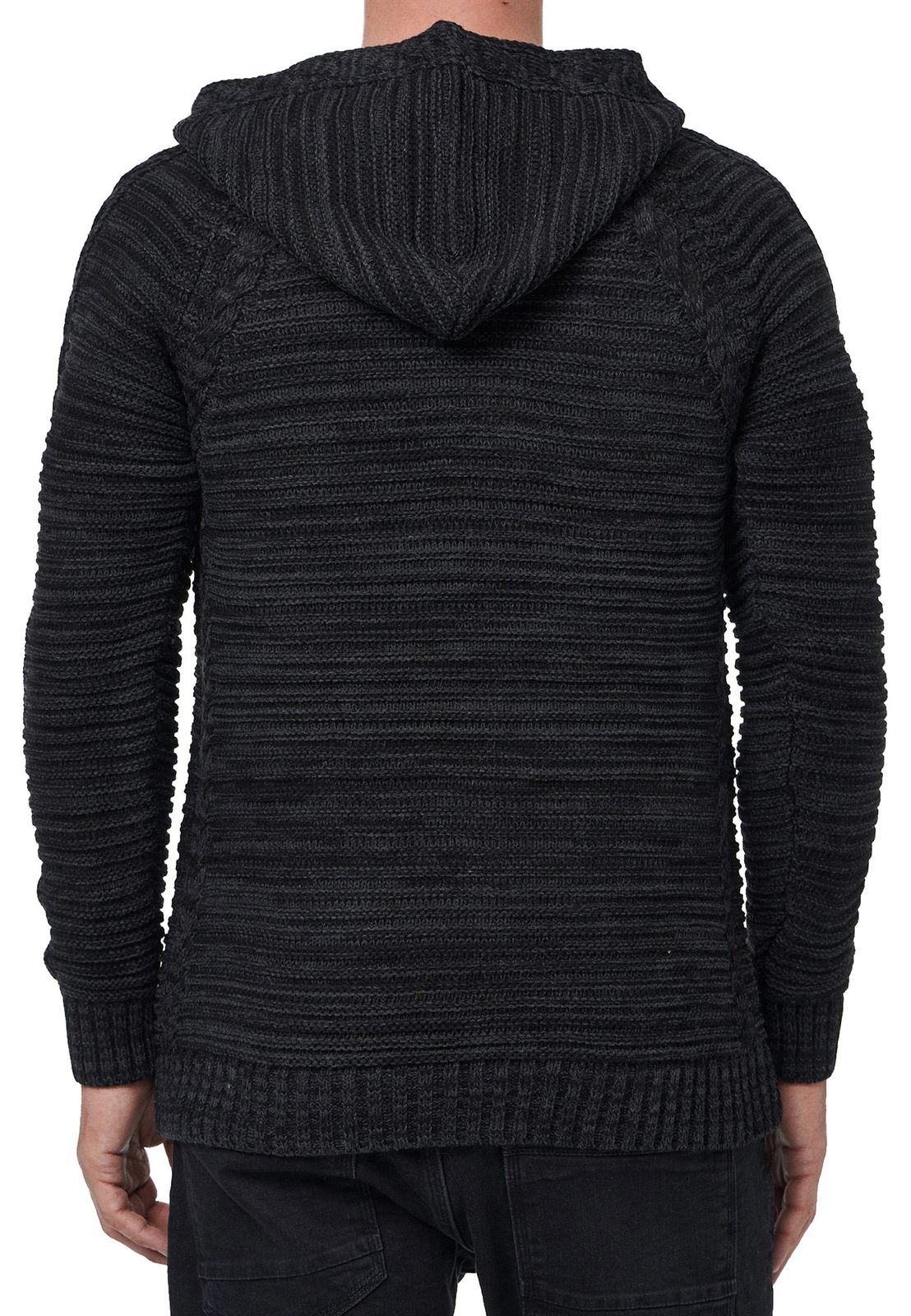 Straordinario pullover da uomo in maglia grossa con cappuccio, abbottonatura e lavorazione a trecce, maglione con cappuccio in maglia 13385 Nero