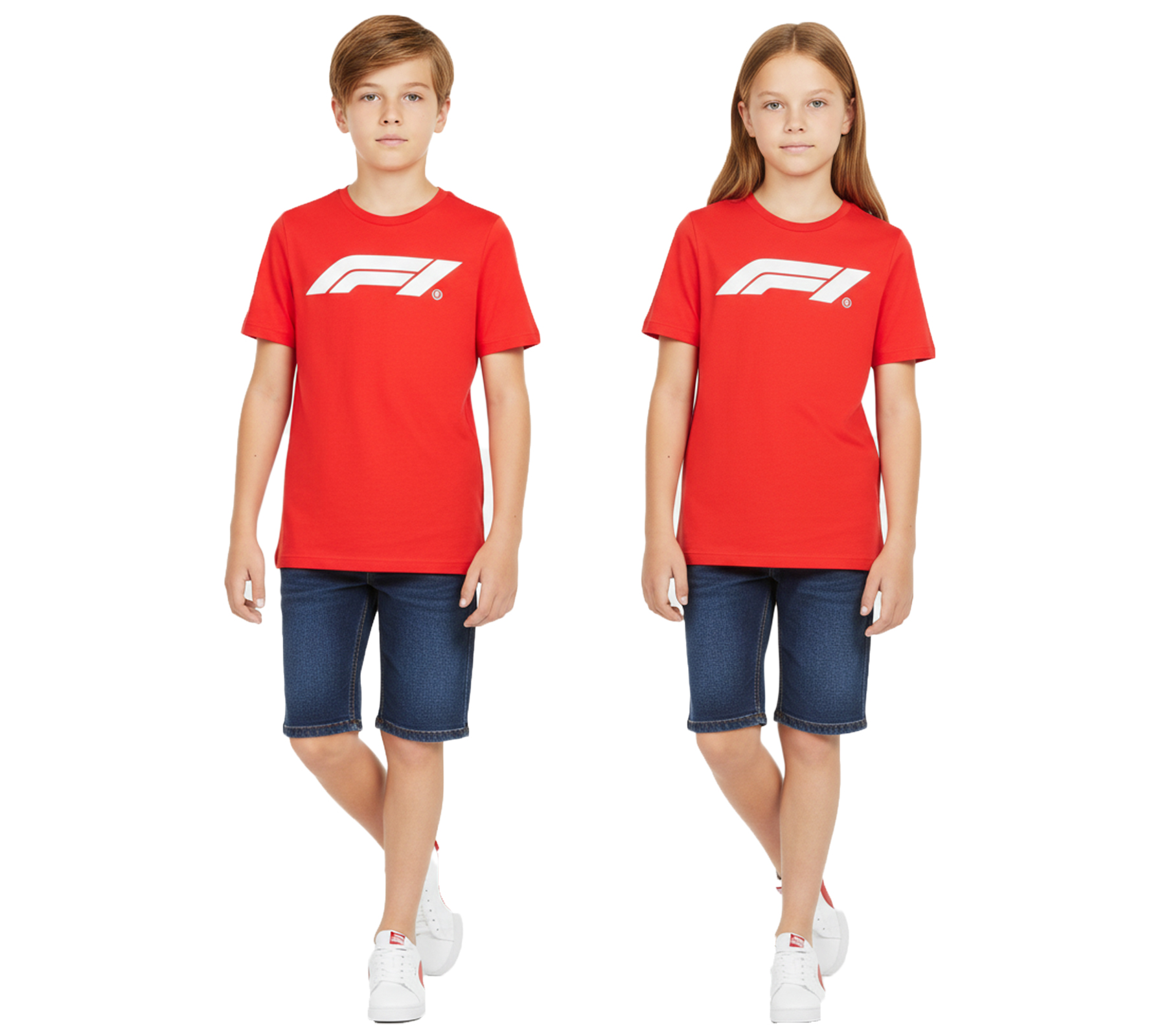 T-shirt PUMA Essentials con logo F1® per bambini: perfetta per i piccoli appassionati di sport motoristici.
