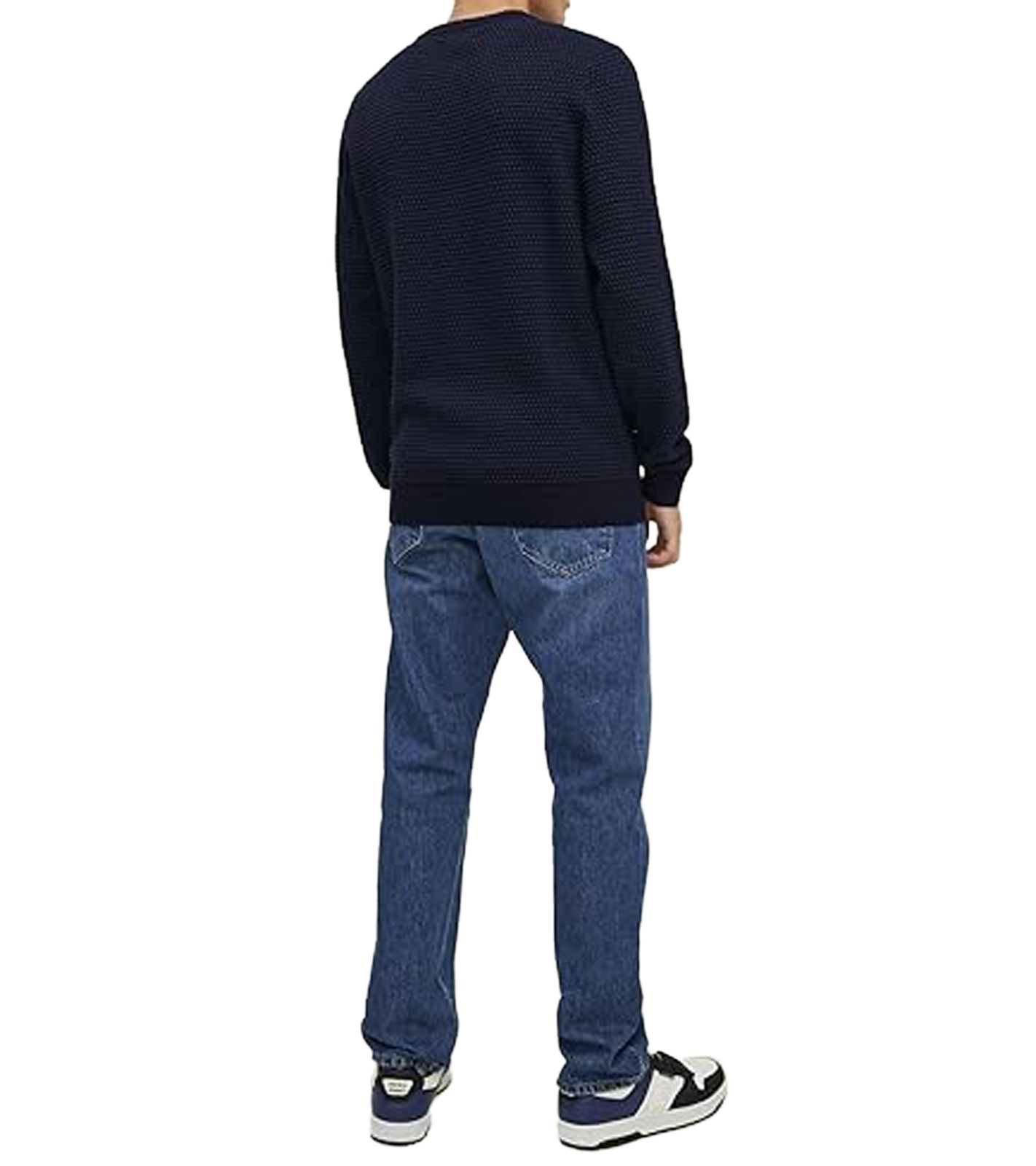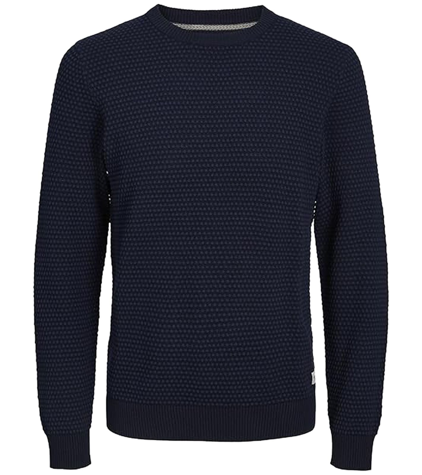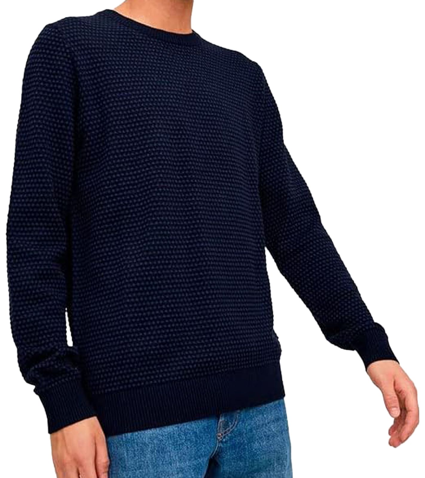 JACK & JONES JJEATLAS Herren Strick-Pullover im strukturiertem Design Knit Crew Neck Baumwoll-Sweater 12212816 Navy
