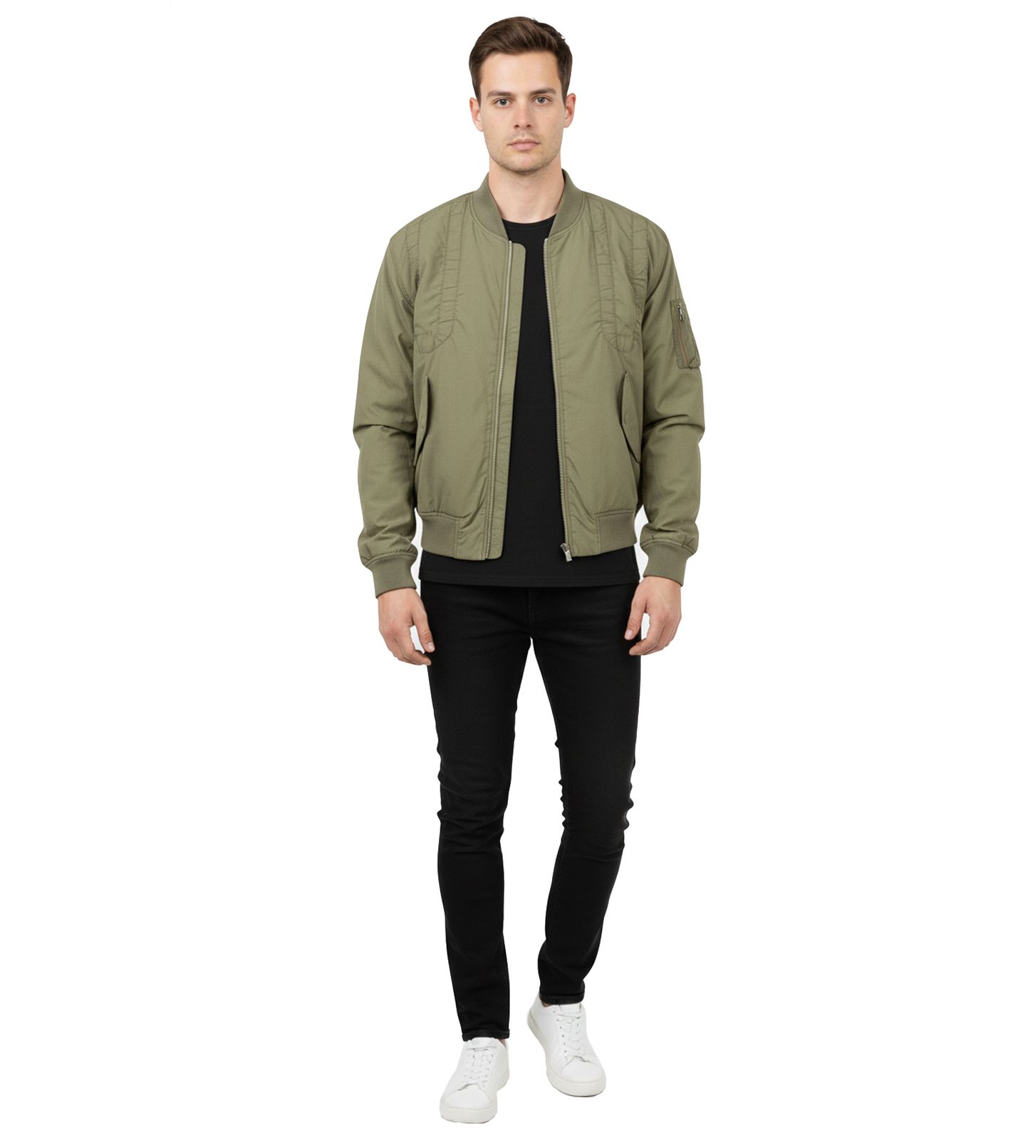 John Elliott Herren Übergangsjacke aus Baumwollpopeline mit Rahmen in Olivgrün