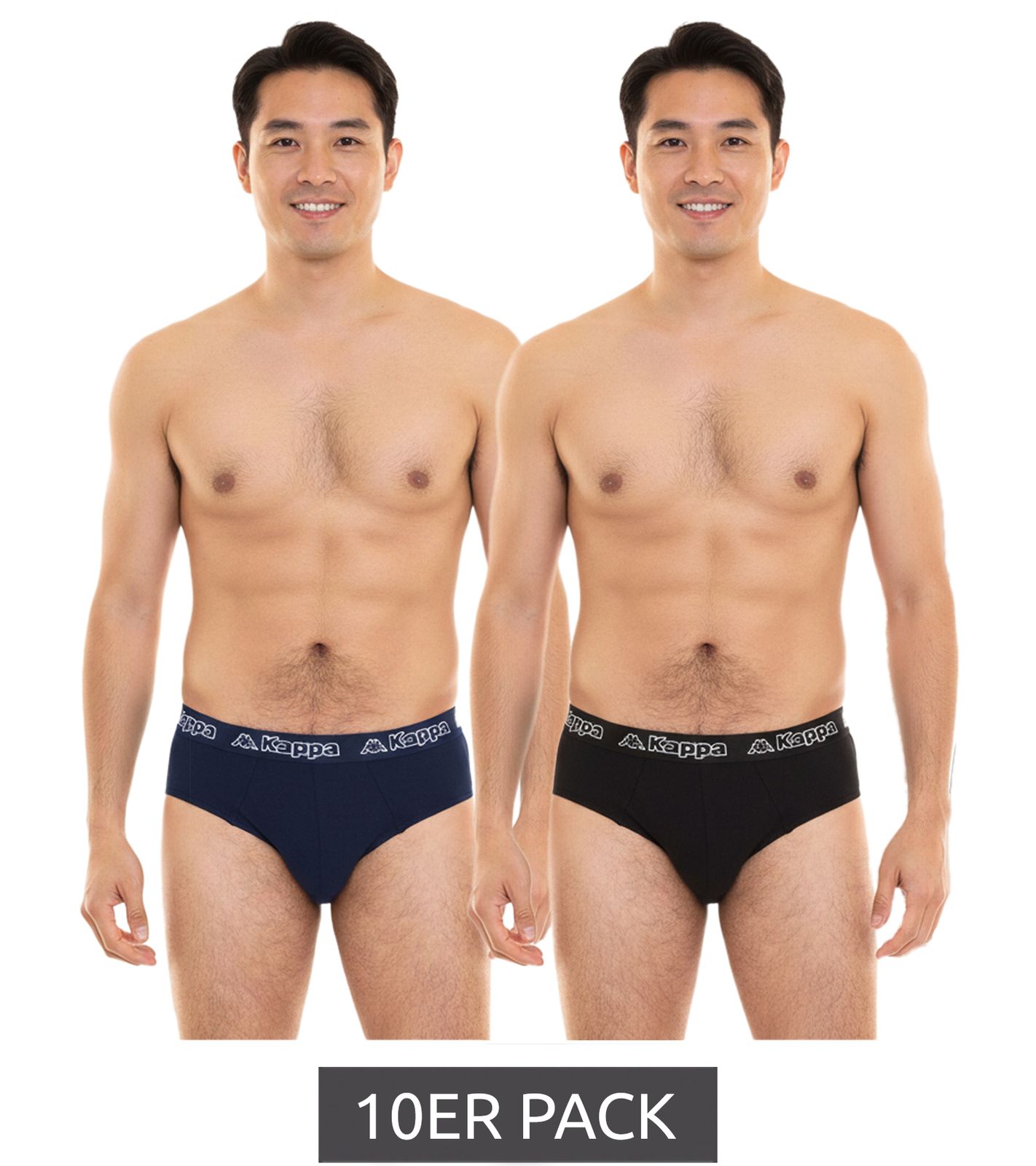 10er Pack Kappa Herren Slip mit Baumwoll-Stretch Unterwäsche mit Logobund Unterhose 711167 Schwarz, Blau oder Grau