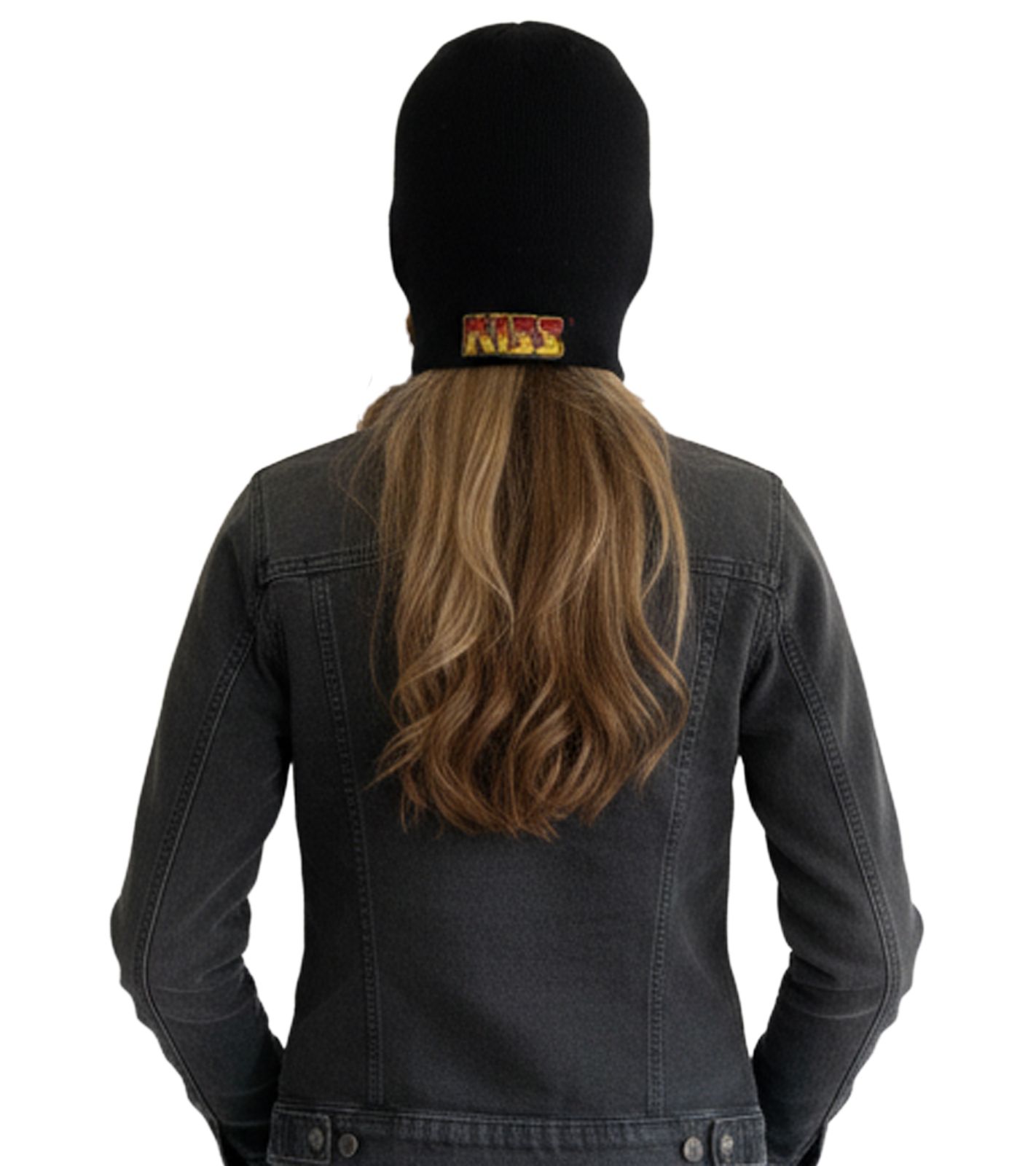 KISS Beanie mit großem Front-Print Strick-Mütze Fan-Beanie mit Logo im Nacken SK162063KIS Schwarz