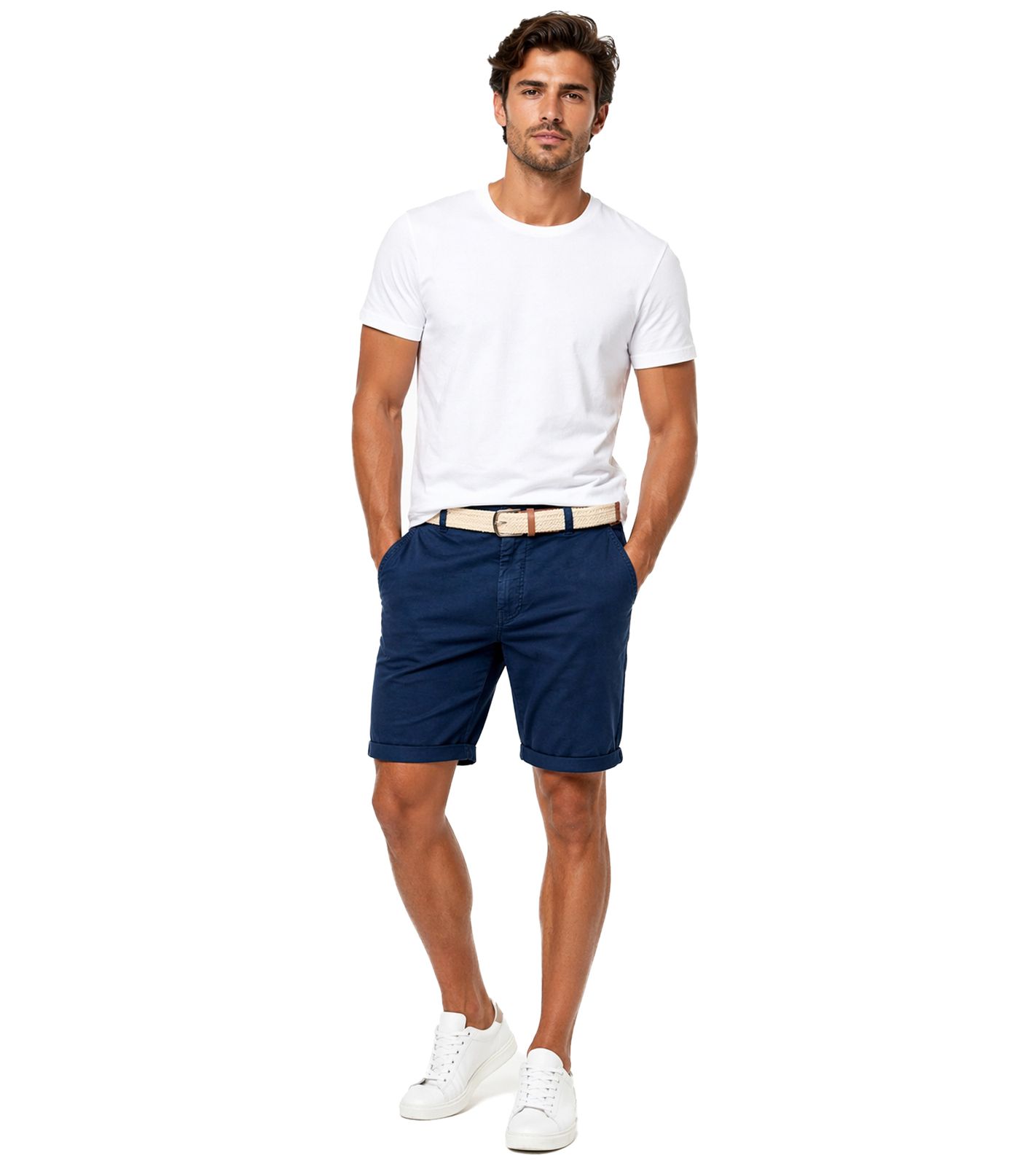 klassische 11 PROJECT PRFribus Herren Chino Shorts inkl. Gürtel mit Knopf und Reißverschluss Shorts 20714807ME-194024 Blau