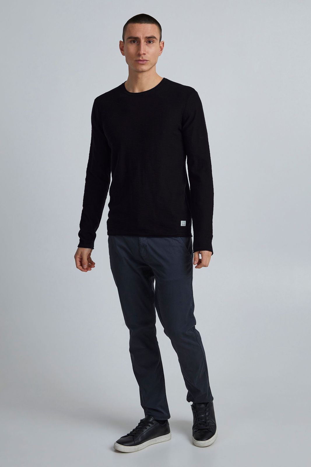 klassischer 11 PROJECT PRFriko Herren Feinstrickpullover mit Rundhals Strickpullover 20714436ME-194007 Schwarz