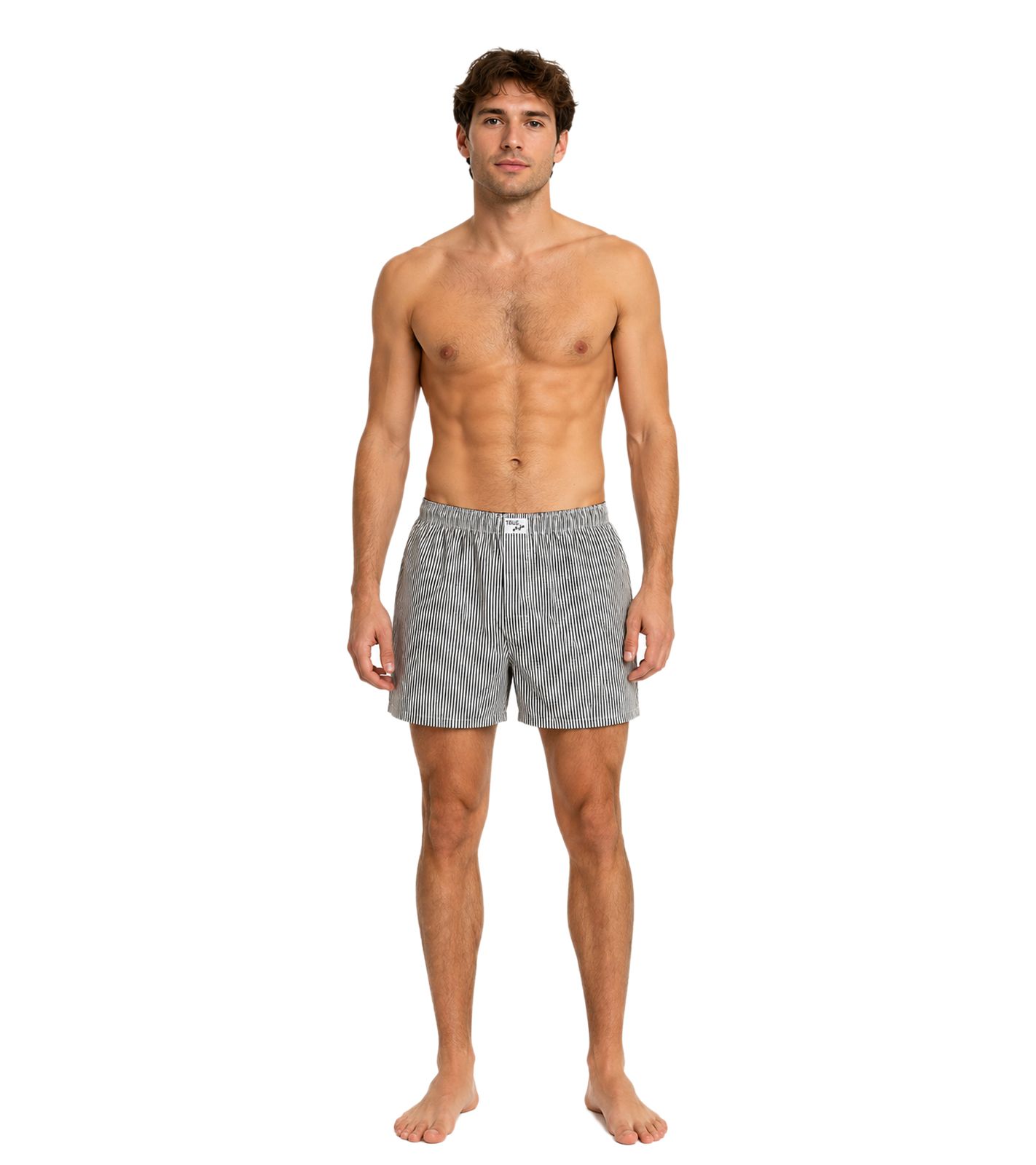 klassisches 3er Pack TRUE style Herren Boxershorts nachhaltige Web-Boxershorts Baumwoll-Shorts 8975684 Dunkelblau/Blau-kariert/Blau-Weiß-gestreift