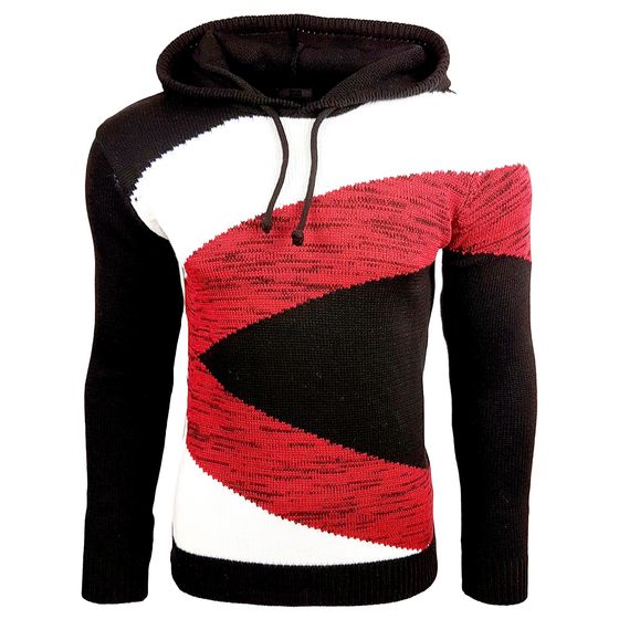Kontrastfarbiger Herren Kapuzen-Pullover im Colorblock Design Sweater Slim Fit Hoodie 13245 Schwarz/Weiß/Rot