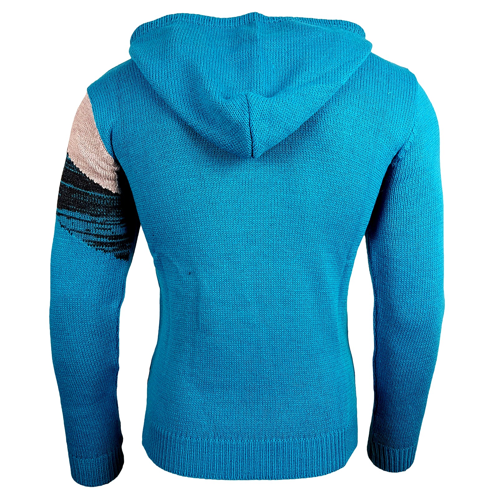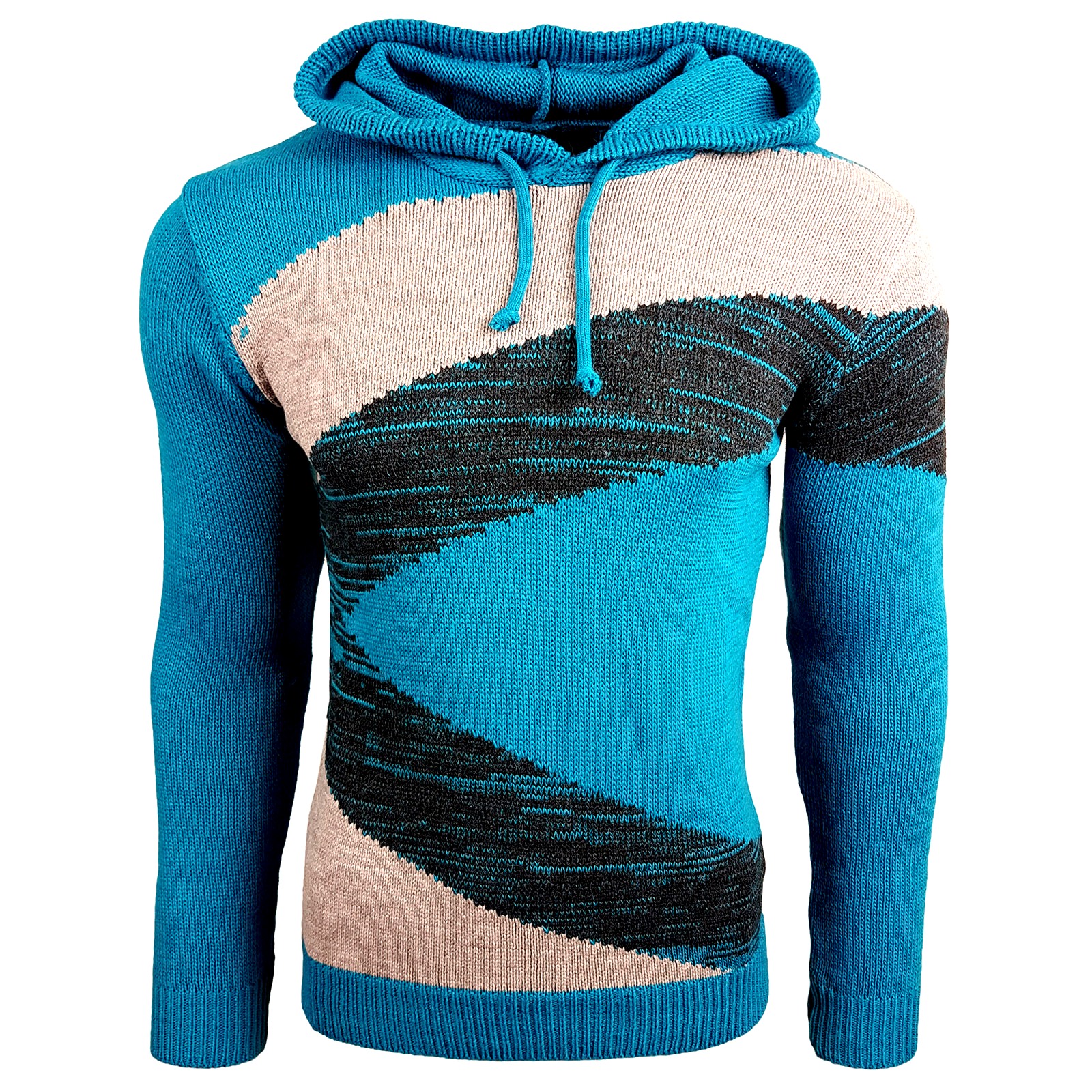 Kontrastfarbiger Herren Kapuzen-Pullover im Colorblock Design Sweater Slim Fit Hoodie 13245 Türkis/Grau/Anthrazit