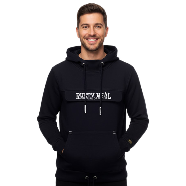 Kuscheliger Hoodie für Herren mit coolem Front-Detail Kapuzen-Pullover Sweater 19153 Marine-Blau