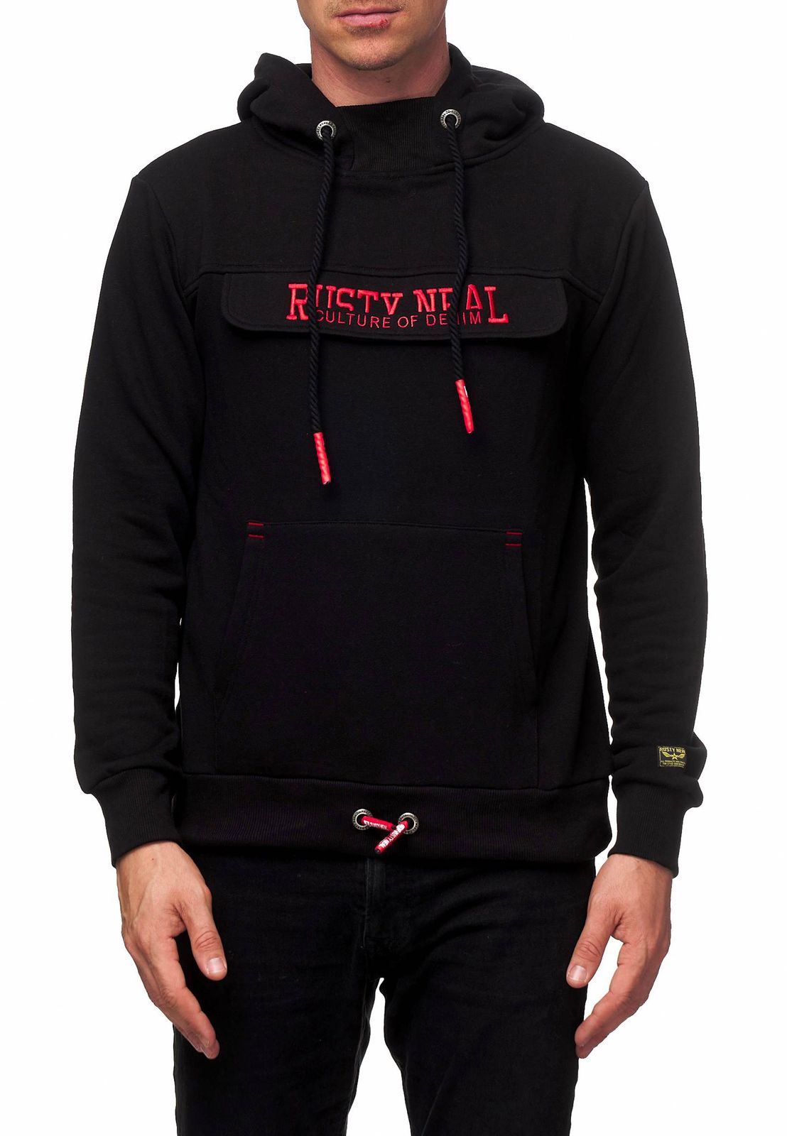 Kuscheliger Hoodie für Herren mit coolem Front-Detail Kapuzen-Pullover Sweater 19153 Schwarz