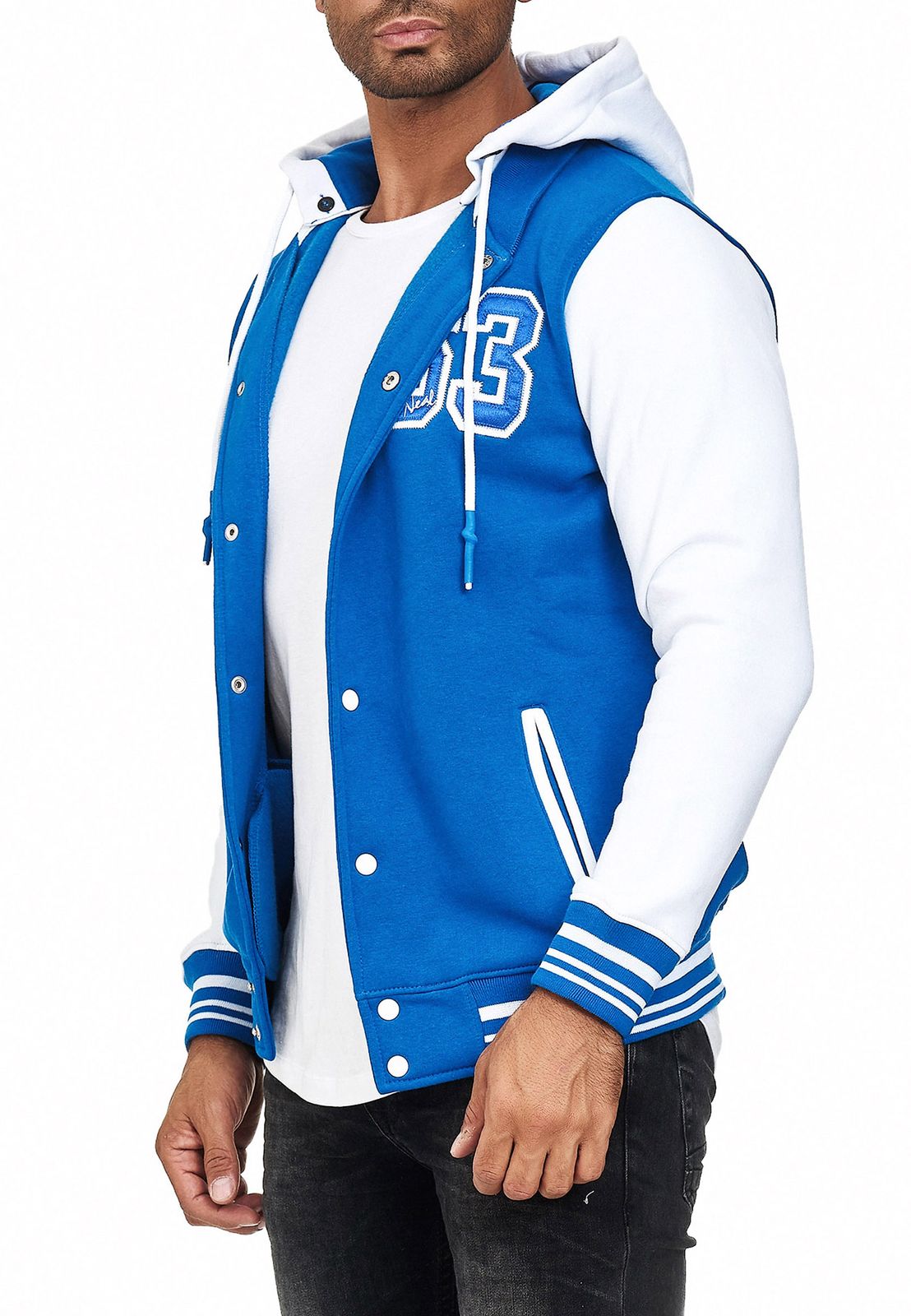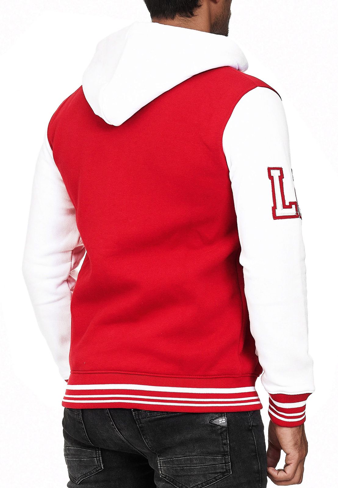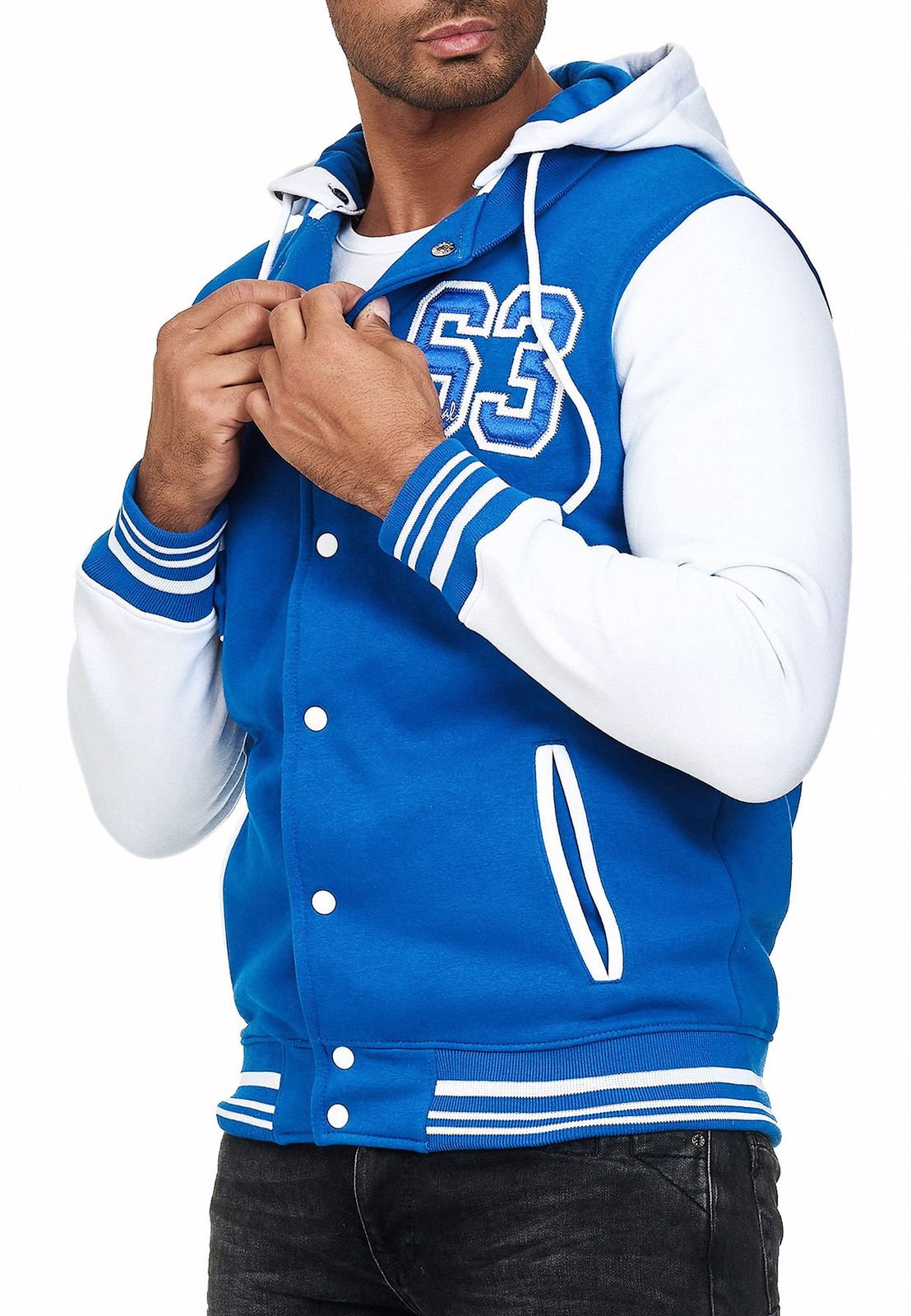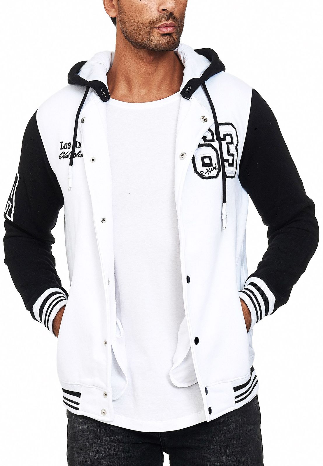 Lässige Sweat-Jacke für Herren im College-Style Kapuzen-Pullover Sweater 6876 in Rot/Weiß, Blau/Weiß oder Weiß/Schwarz