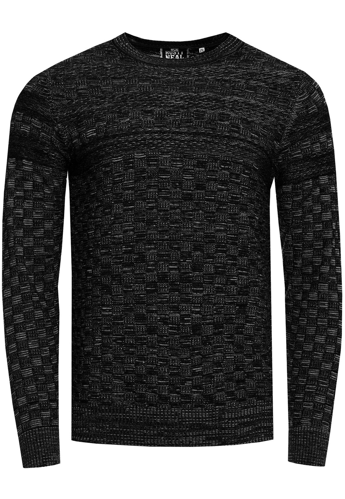 Lässiger Herren Feinstrick-Sweater mit Strukturmuster Rundhals-Pullover 13375 Schwarz