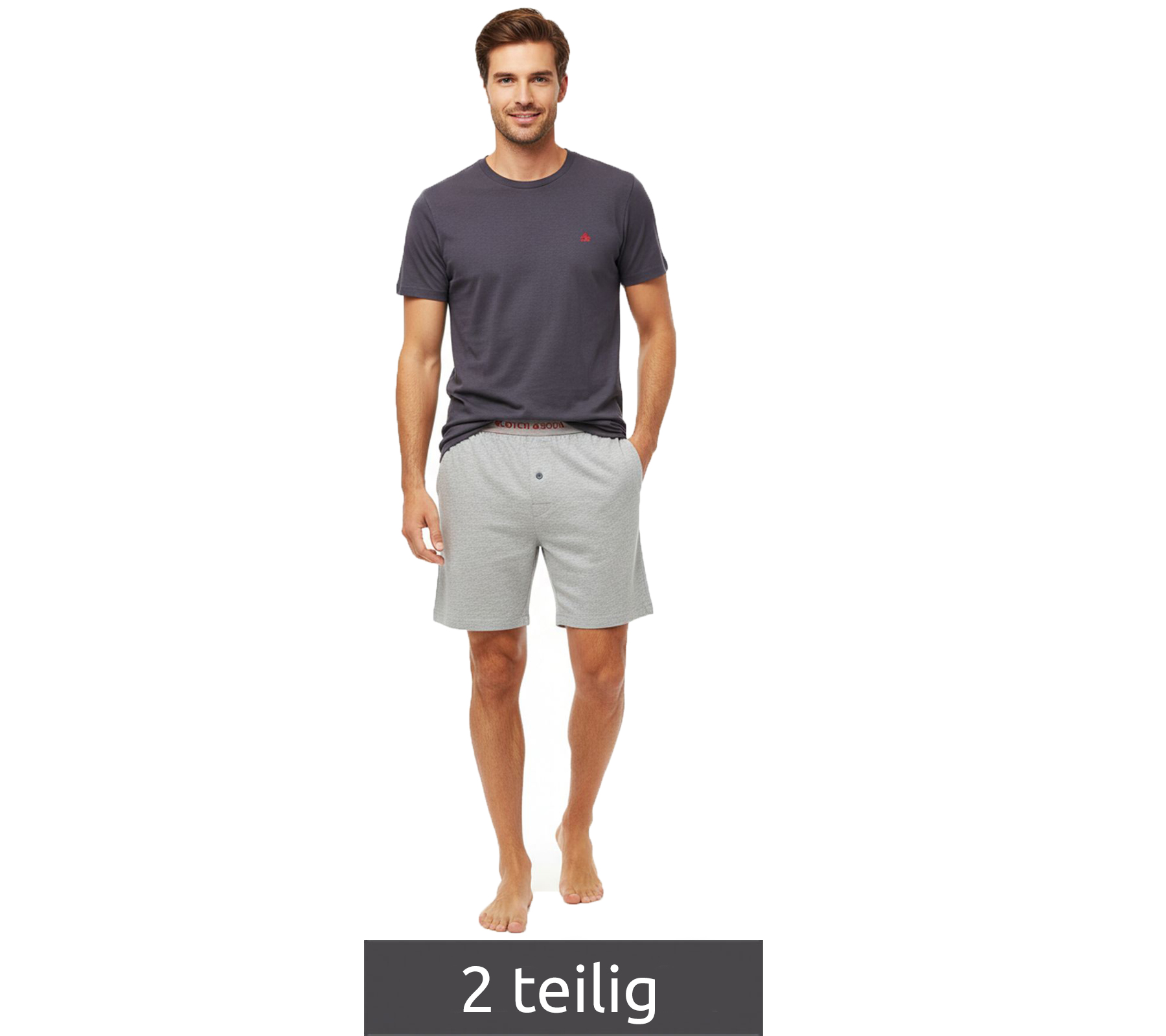 leichter SCOTCH & SODA Herren Pyjama 2-teiliges Shorty-Set mit Baumwolle kurzer Schlafanzug Grau, Blau oder Hell-Bordeaux