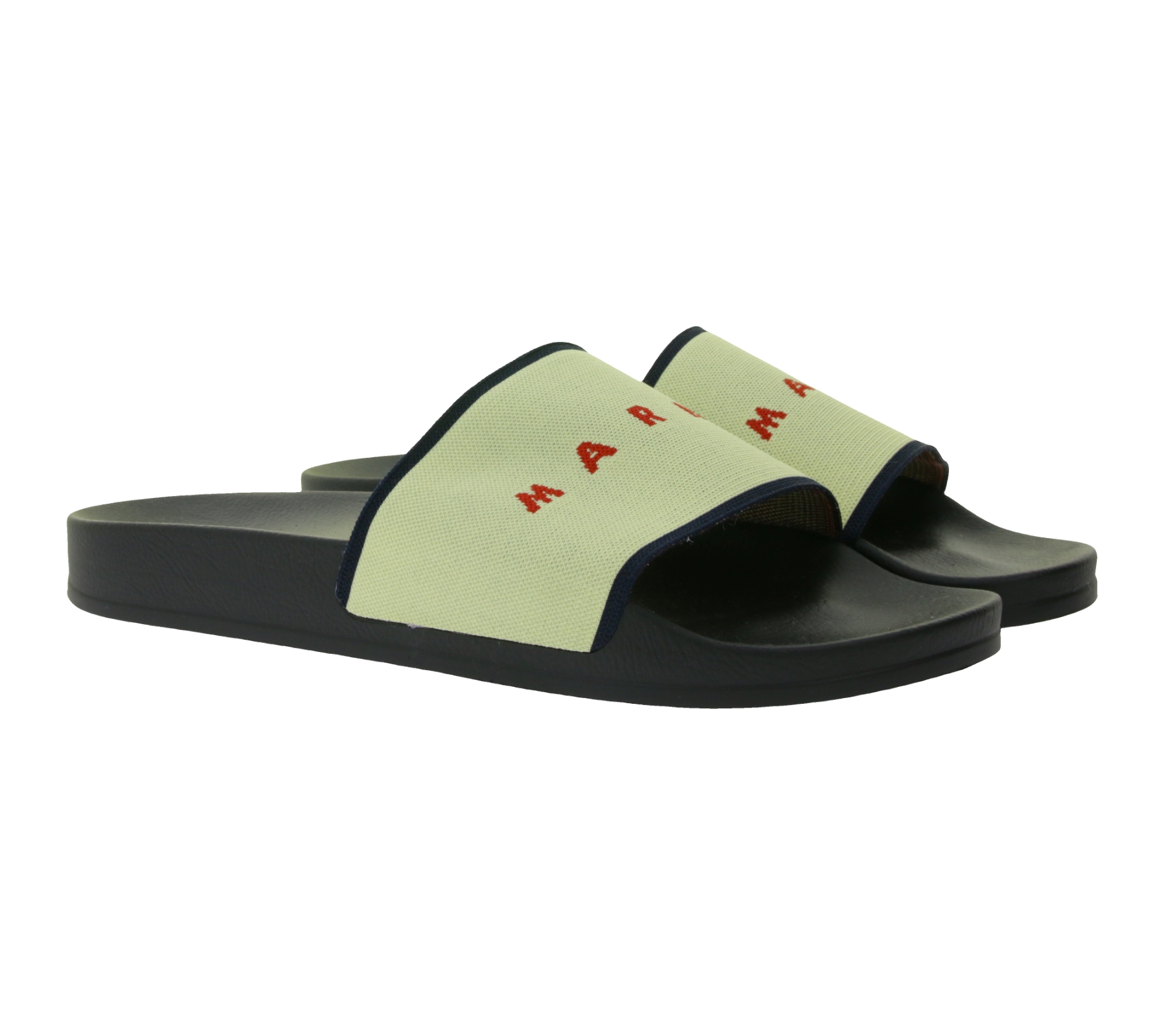 MARNI Slip-On Latschen Sommer-Schuhe mit Logo-Stickerei Pantoletten Schwarz