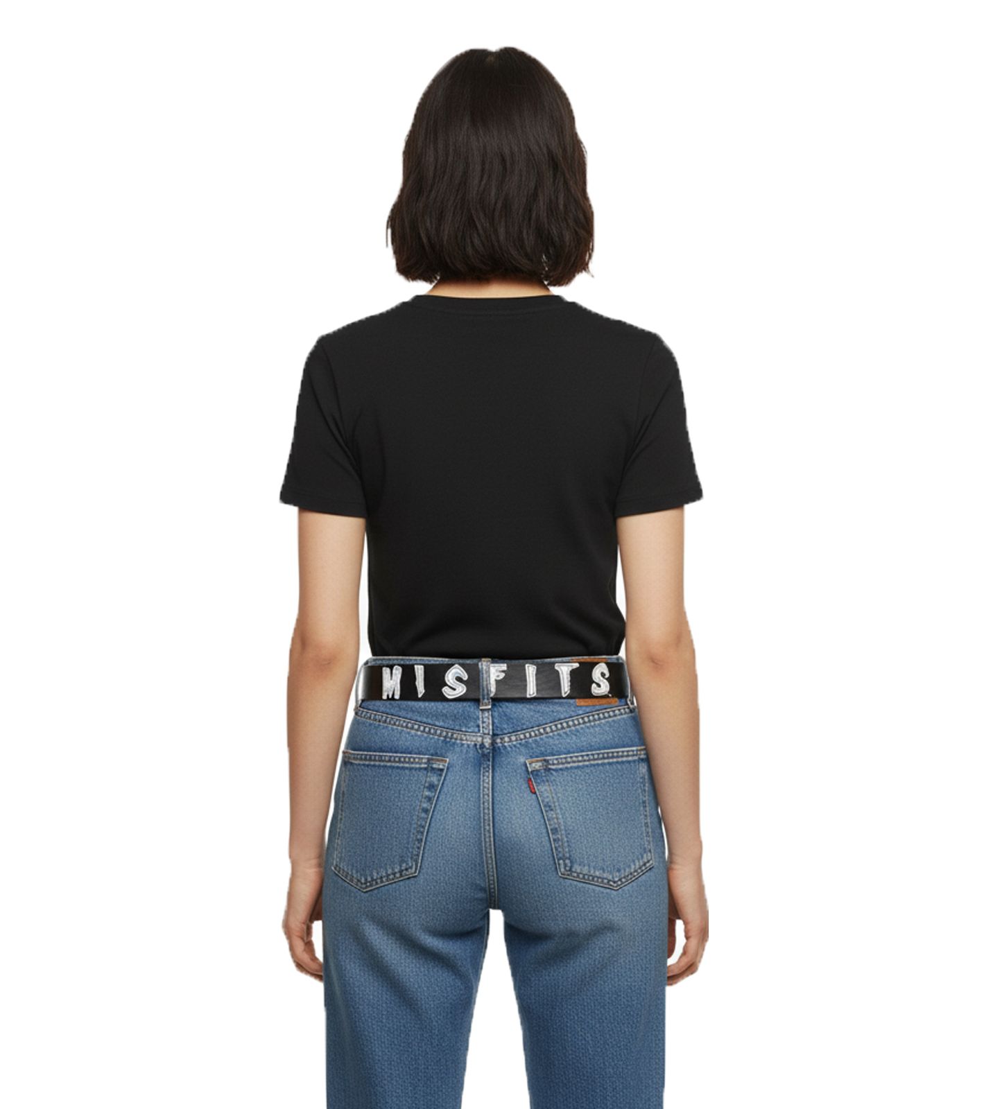 MISFITS Gürtel der Punk-Band für Damen und Herren mit aufgenähtem Schriftzug und Schnalle mit Patch Freizeit-Gürtel BT109172MIS Schwarz/Weiß