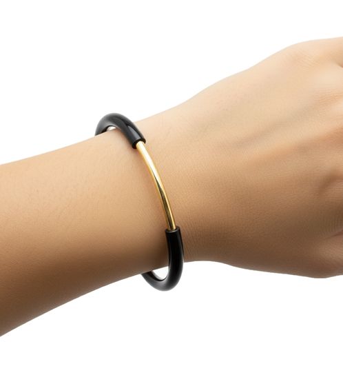 - mit goldfarbenem Mittelsteg und schwarzes Armband
