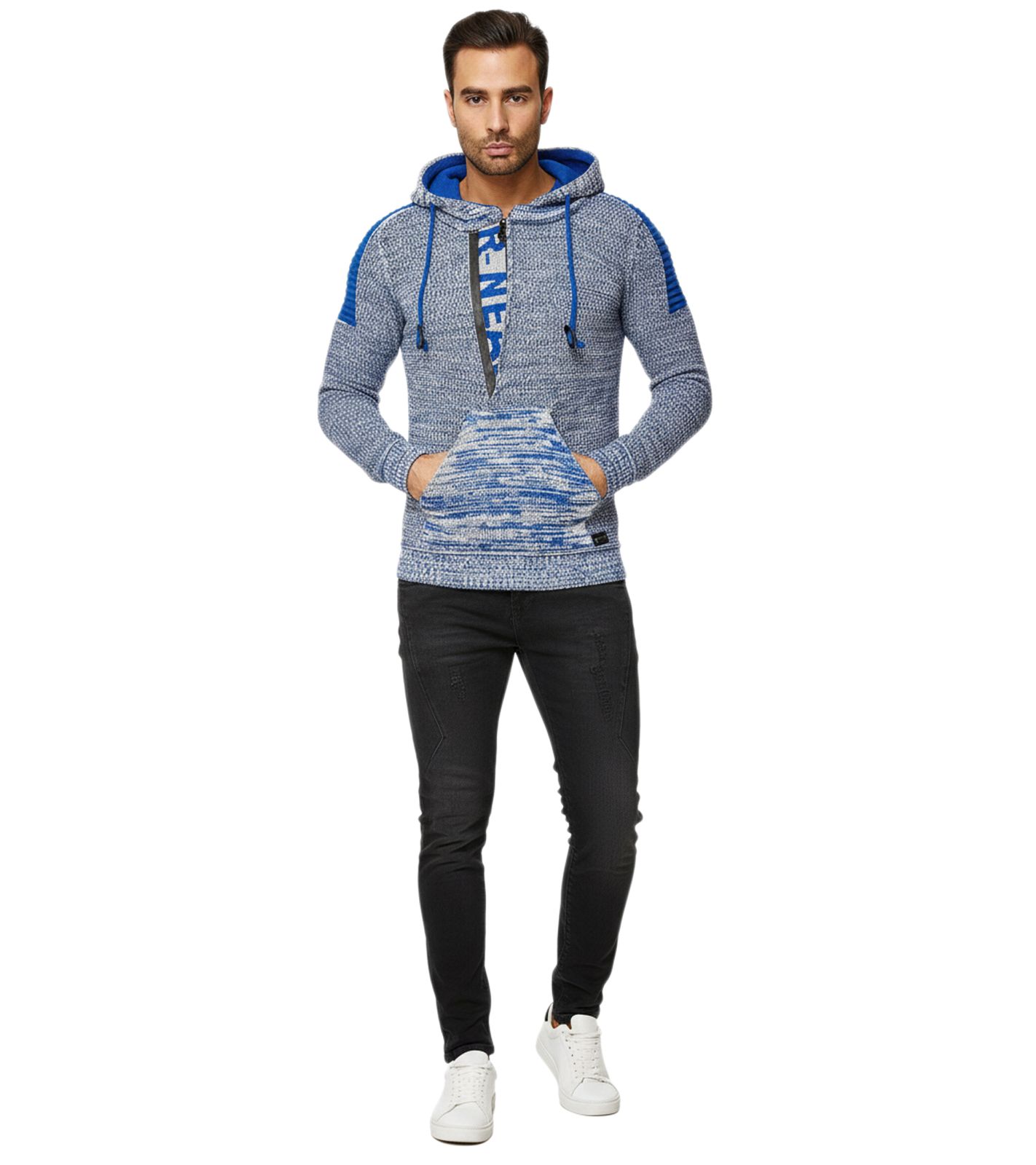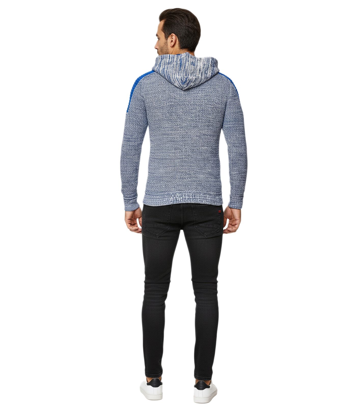 Moderner Herren Strick-Pullover Kapuzen-Sweater Grobstrick-Hoodie Strick-Jacke 13290 Sax-Blau