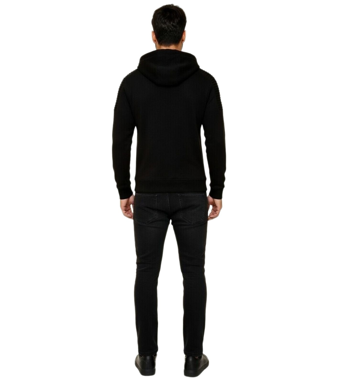 Moderner Herren Strick-Pullover Kapuzen-Sweater Grobstrick-Hoodie Strick-Jacke 13290 Schwarz
