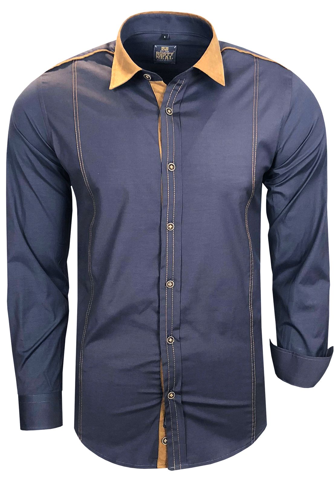 Modernes Langarm-Hemd für Herren mit kontrastfarbigen Nähten Business-Shirt Freizeit-Hemd 76 Anthrazit