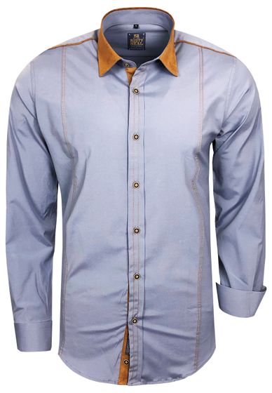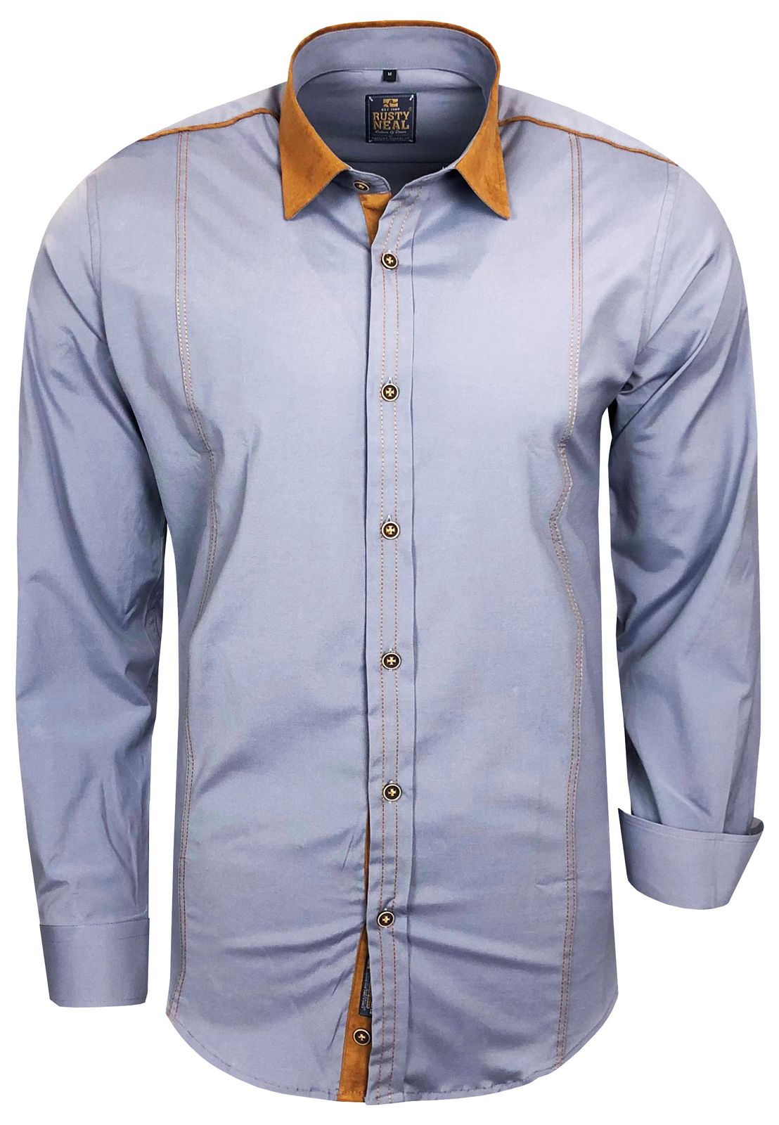 Modernes Langarm-Hemd für Herren mit kontrastfarbigen Nähten Business-Shirt Freizeit-Hemd 76 Grau