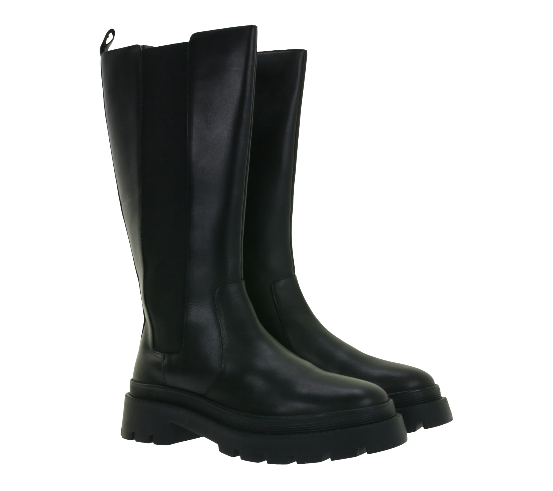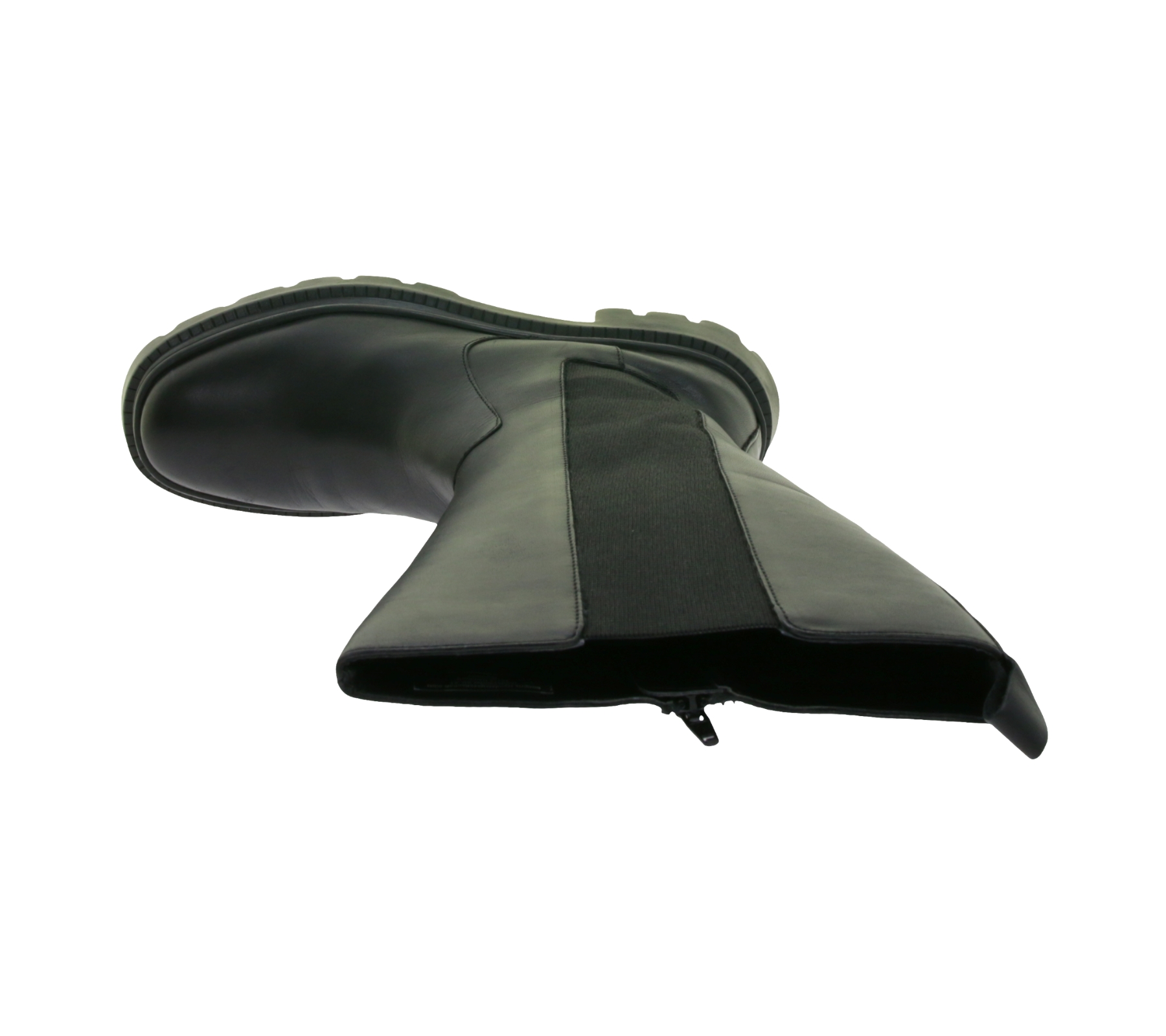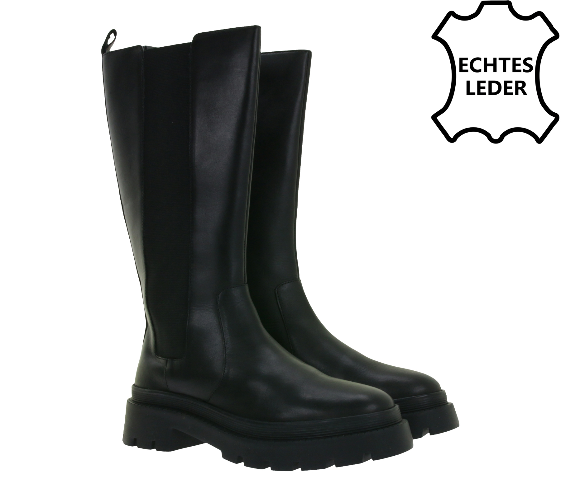 modische Damen Echt-Leder Stiefel Chunky Stiefel mit Elastikeinsatz 939306 Schwarz