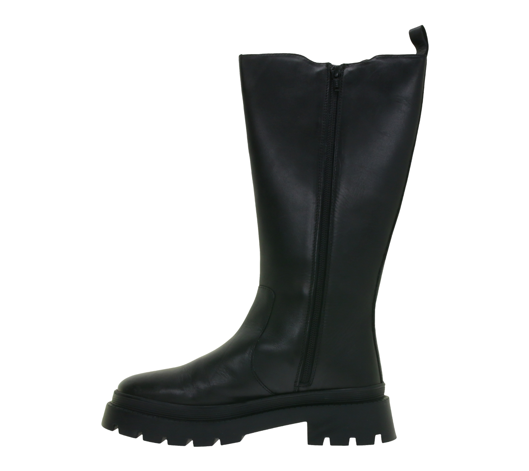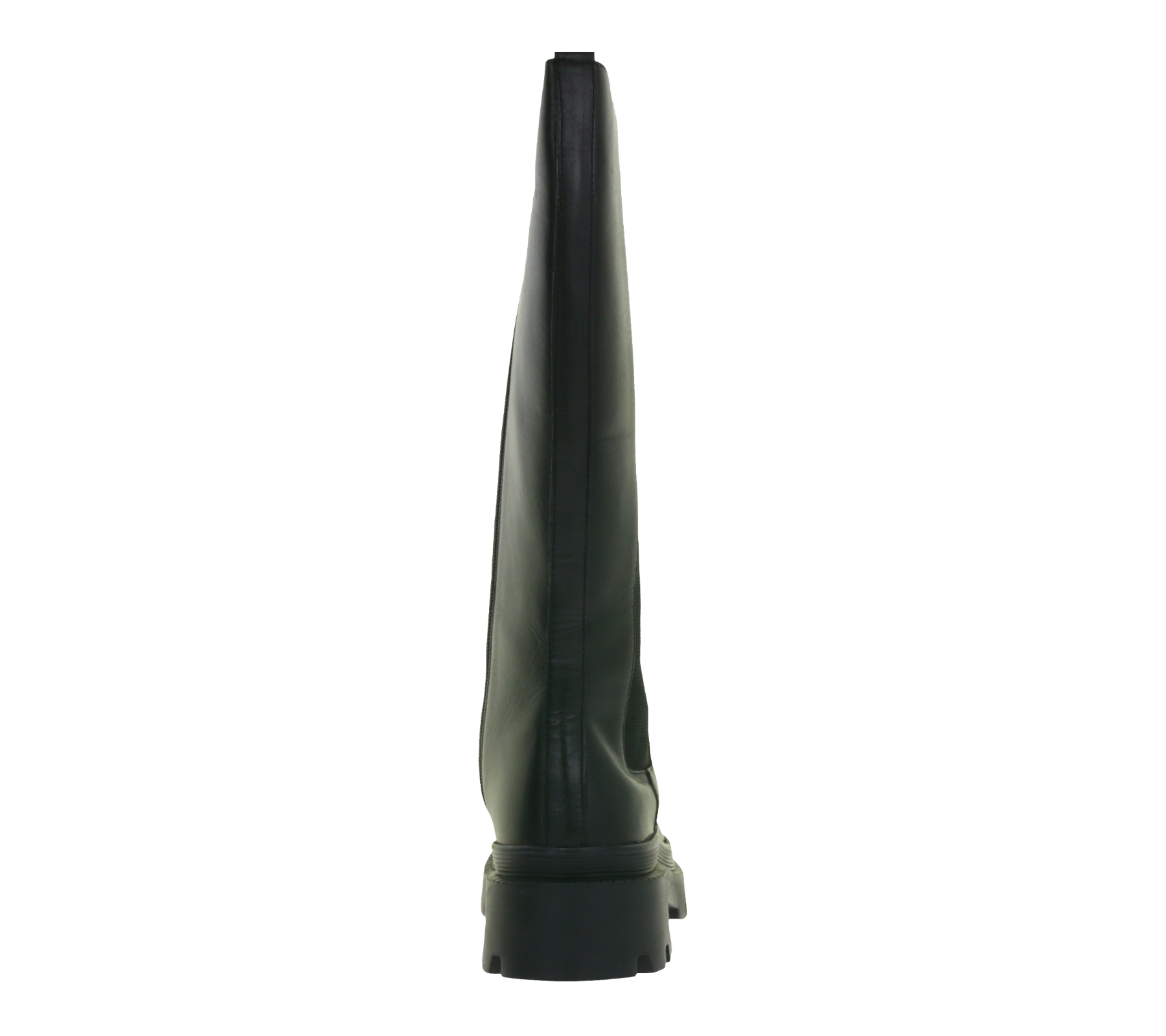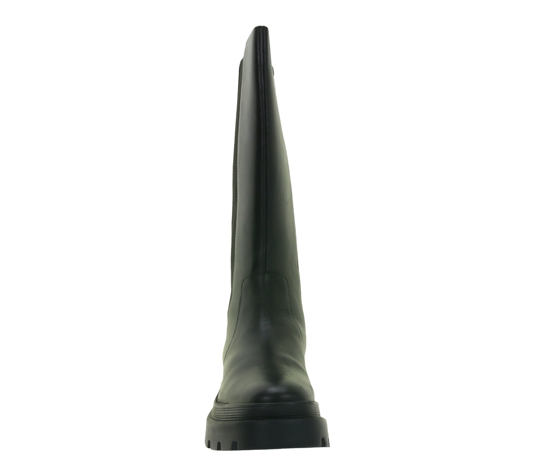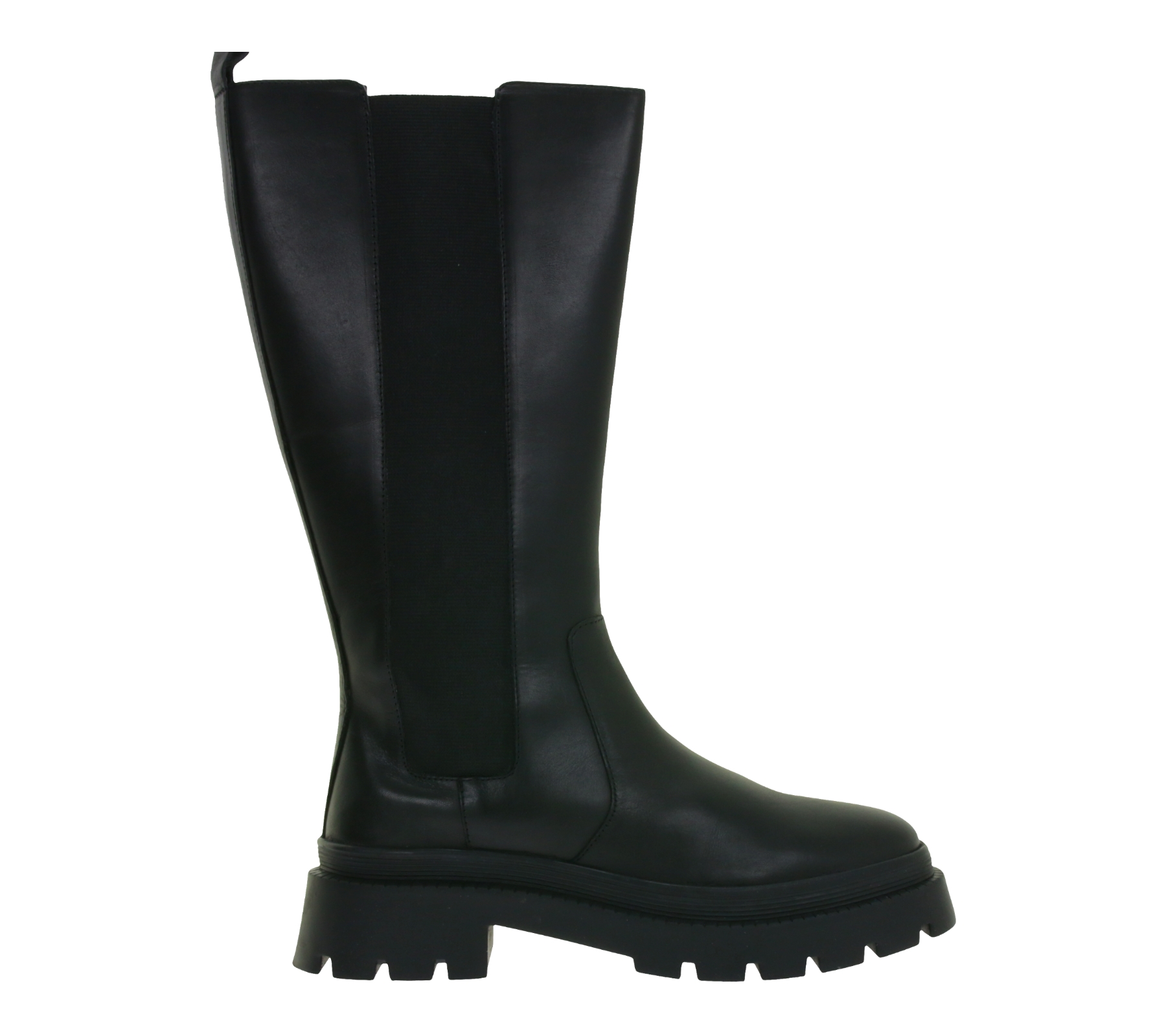 modische Damen Echt-Leder Stiefel Chunky Stiefel mit Elastikeinsatz 939306 Schwarz
