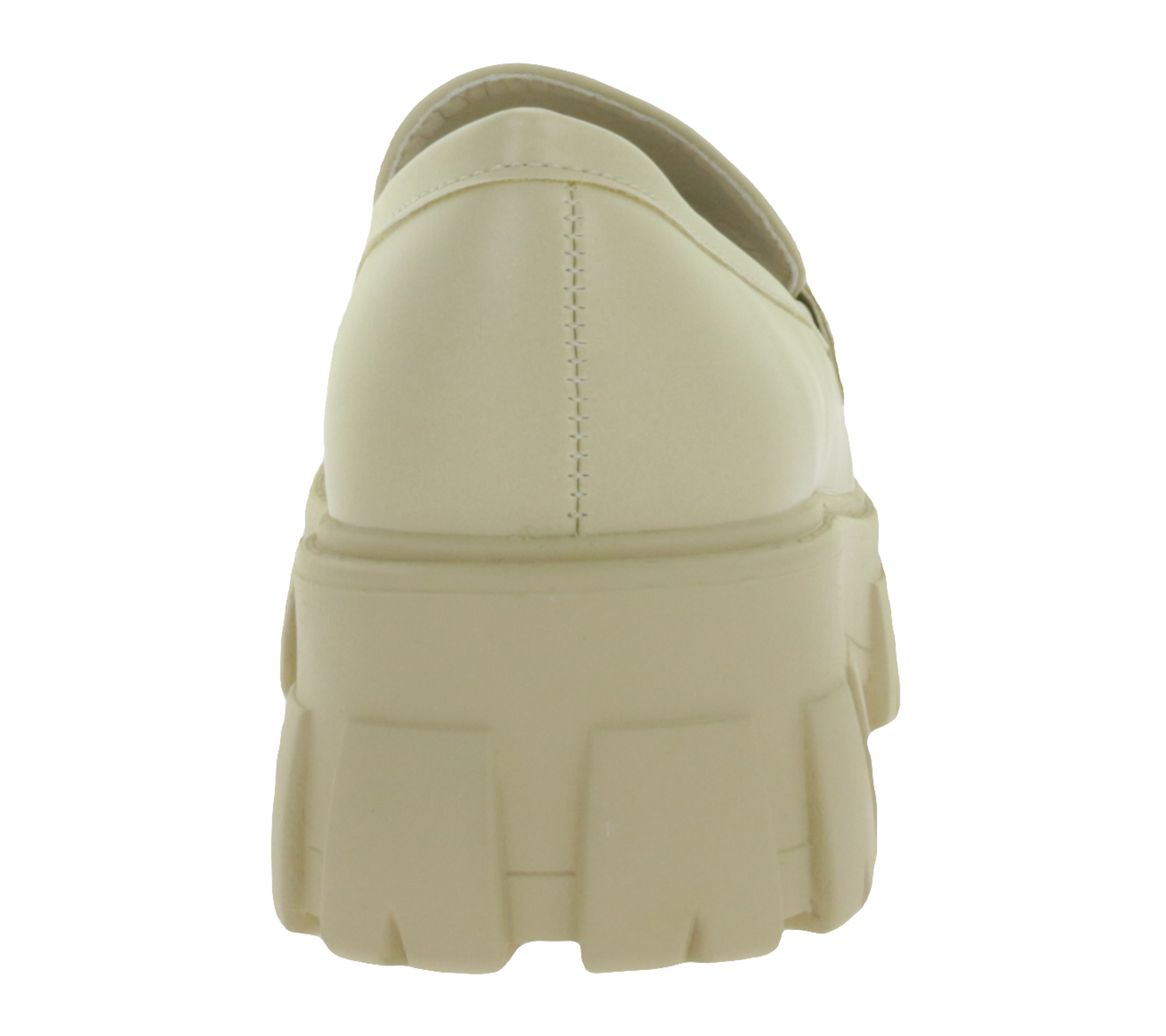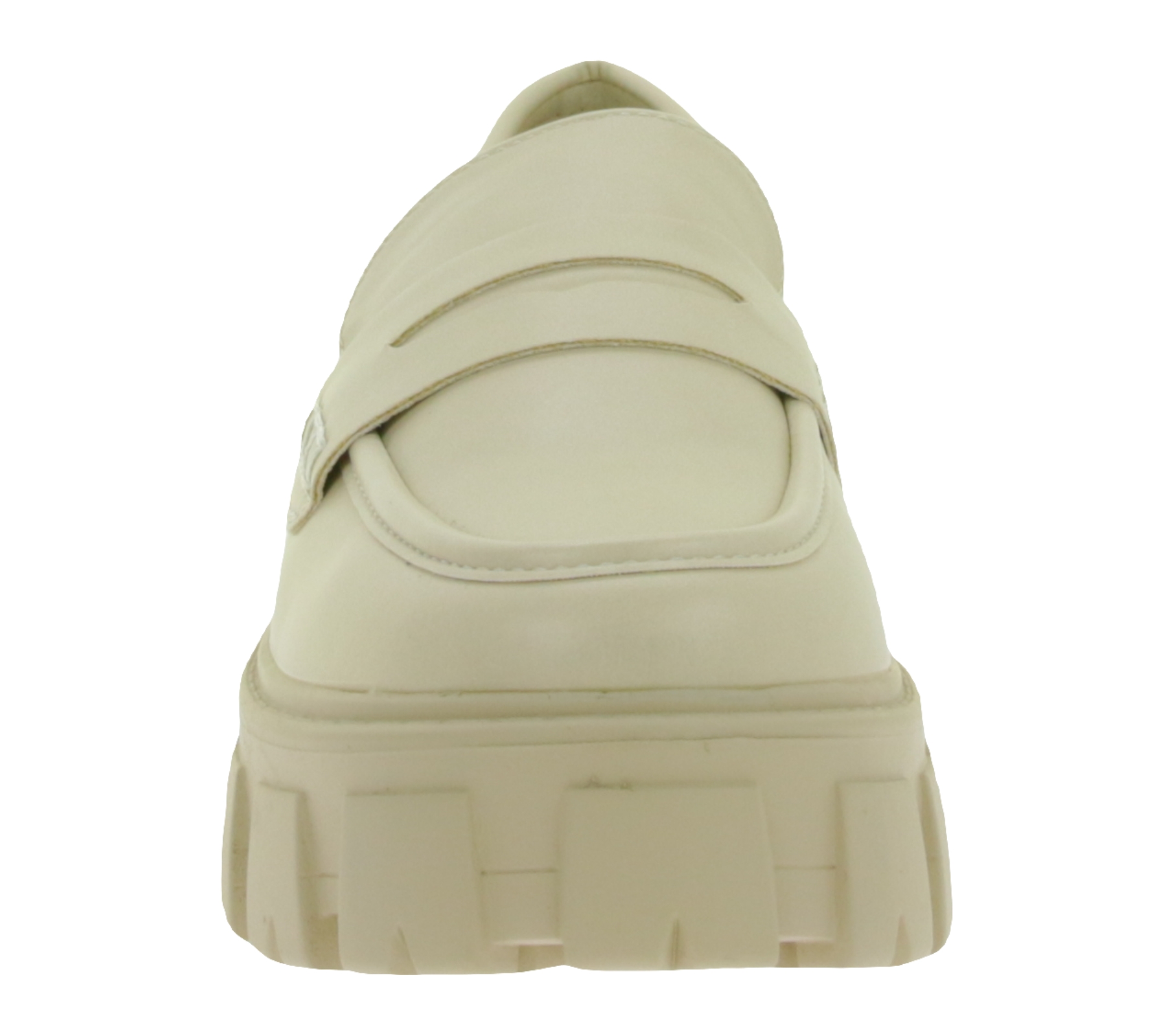 Modische Damen Loafer-Schuhe mit Chunky-Sohle Leder-Imitat-Schuhe Schlupfschuhe 918888 Beige