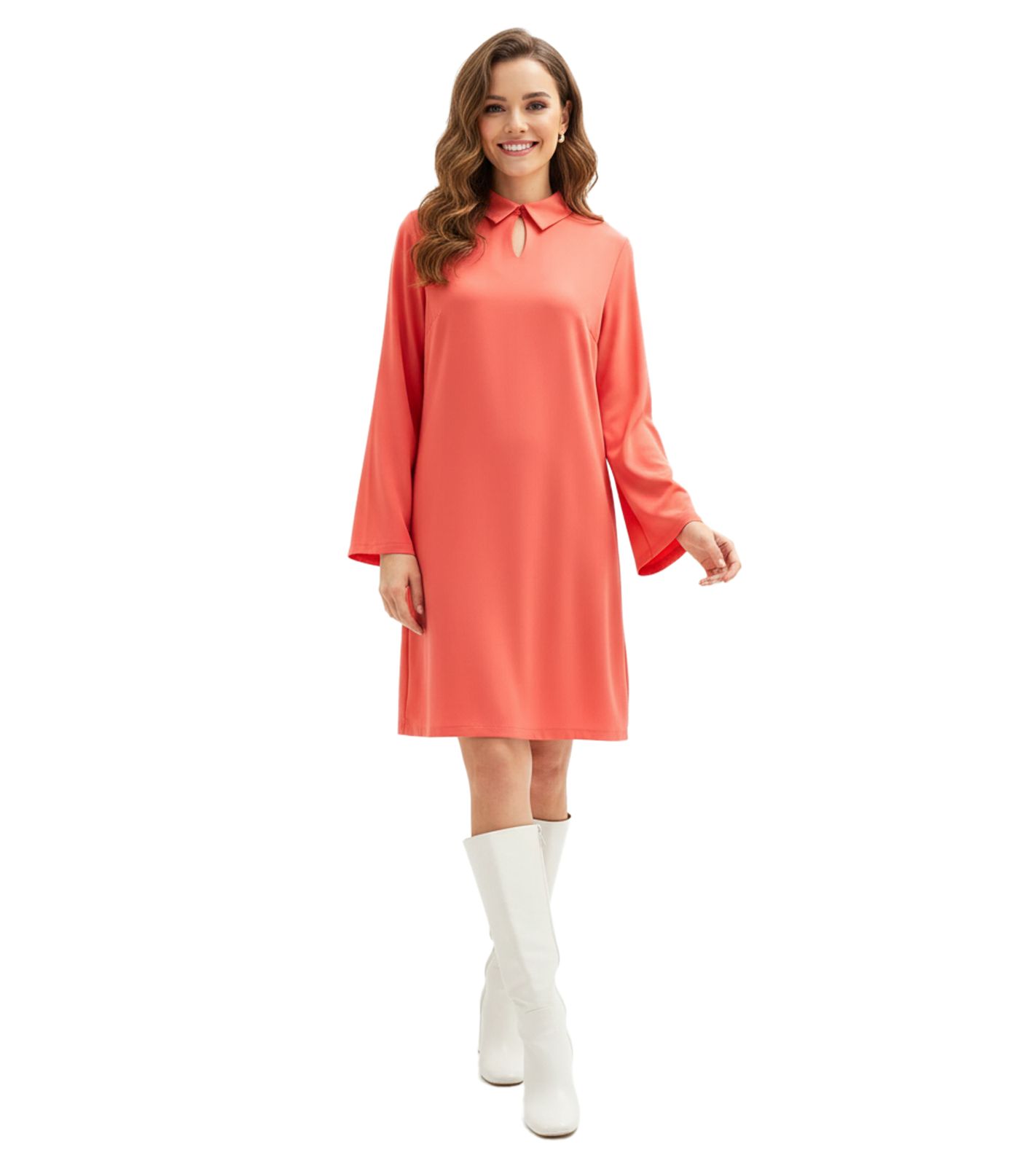 nachhaltiges Damen Mini-Kleid Sommer-Kleid Jersey-Kleid mit Hemdkragen und ausgestellten Ärmeln 928818 Lachs