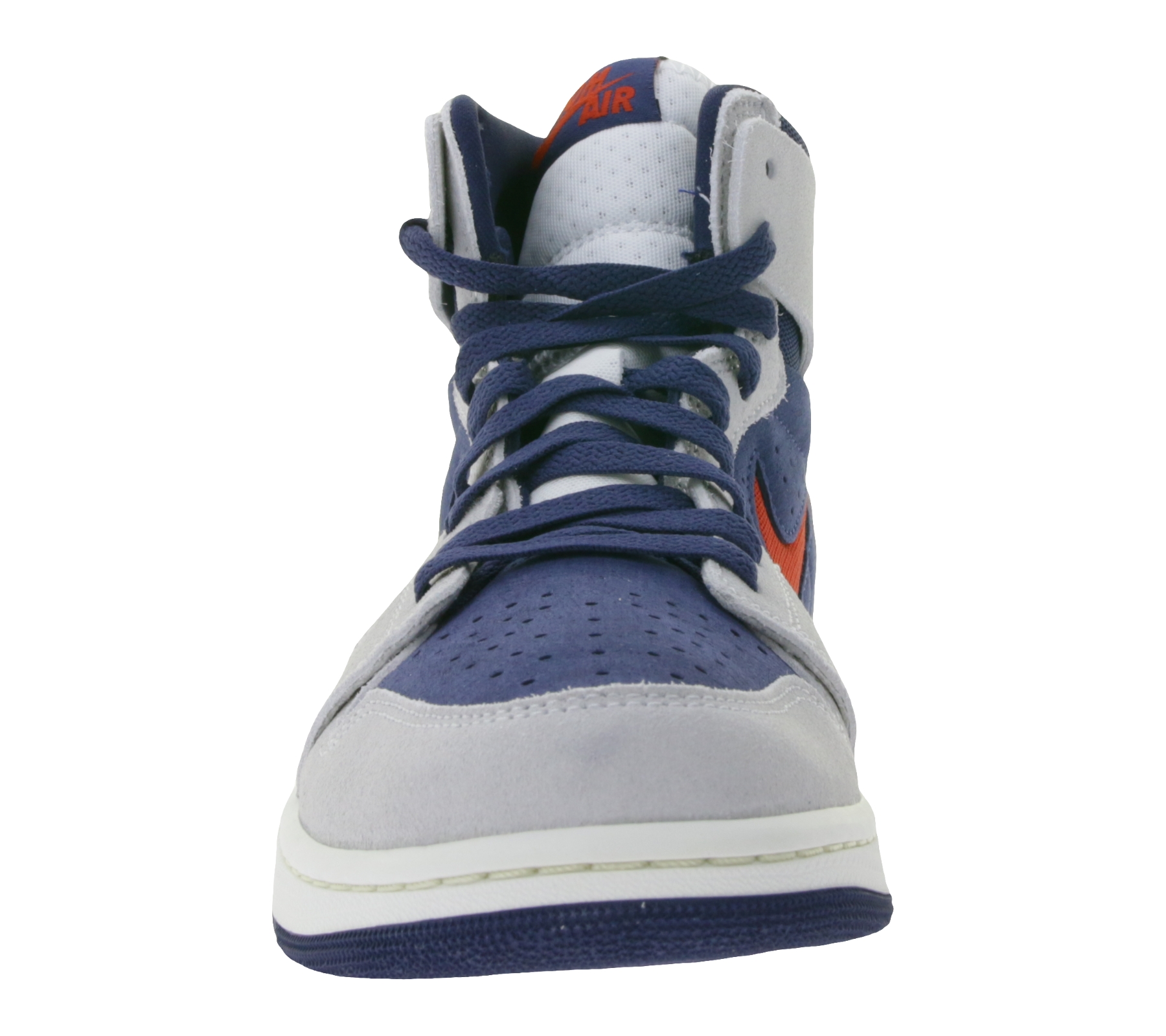 NIKE Air Jordan 1 Zoom Herren Sneaker Echtleder Turnschuhe mit Zoom-Air-Dämpfung Mid-Top Alltags-Schuhe DV1307 406 Blau/Grau/Rot