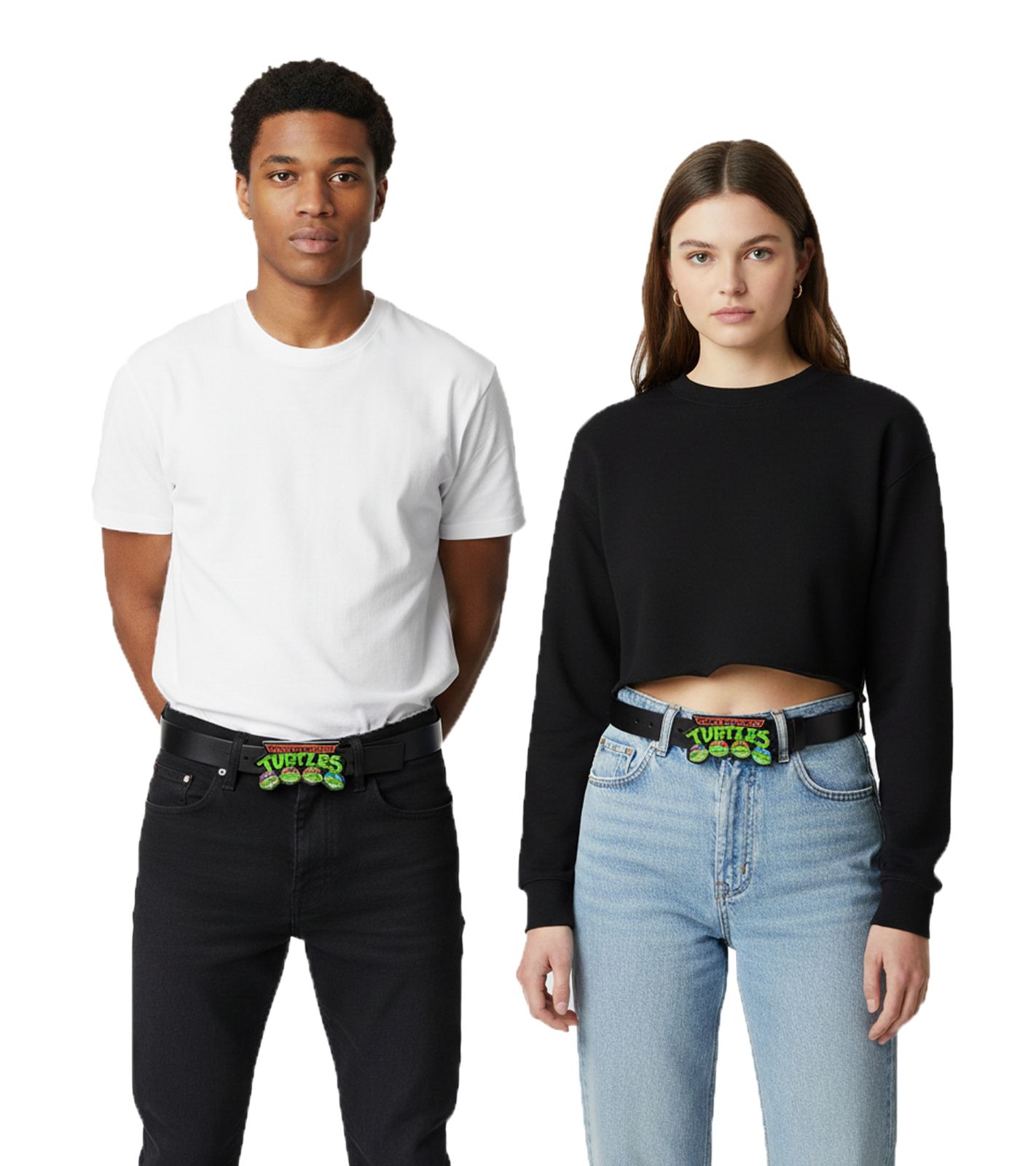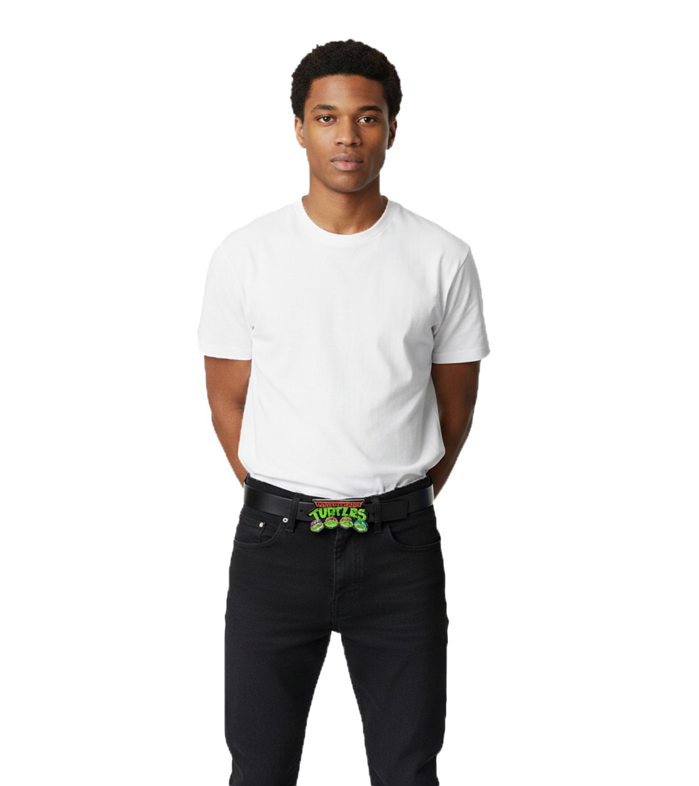 Ninja Turtles Gürtel für Damen oder Herren Leder-Gürtel mit Logo-Schnalle Freizeit-Gürtel 126.5cm BT160648TMT Schwarz
