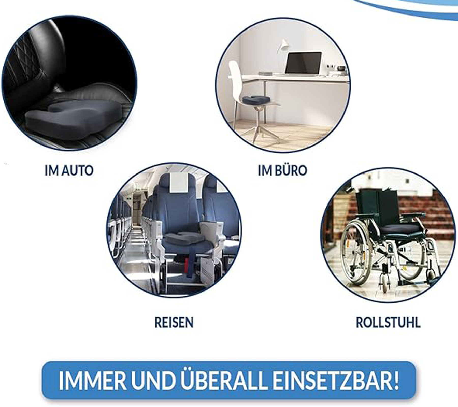 - UNIVERSELL - Ob beim Autofahren als Sitzkissen-Stuhl, beim reisen oder für den Rollstuhl, das Sitzkissen ist orthopädisch und vielseitig einsetzbar