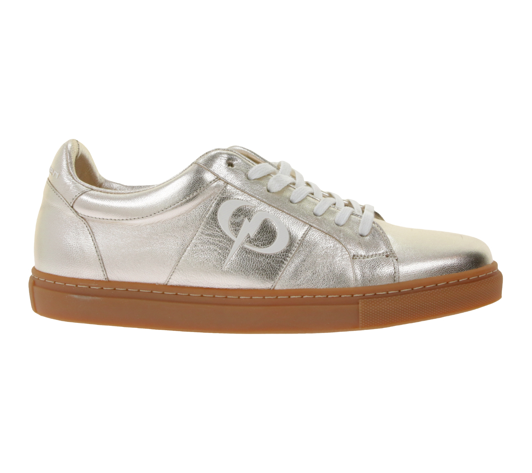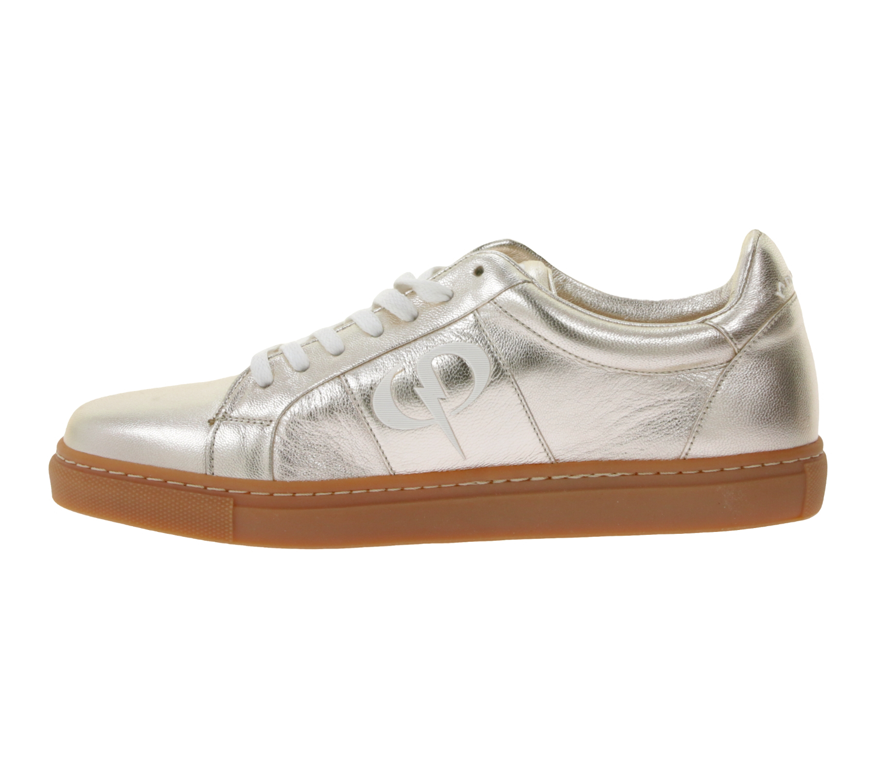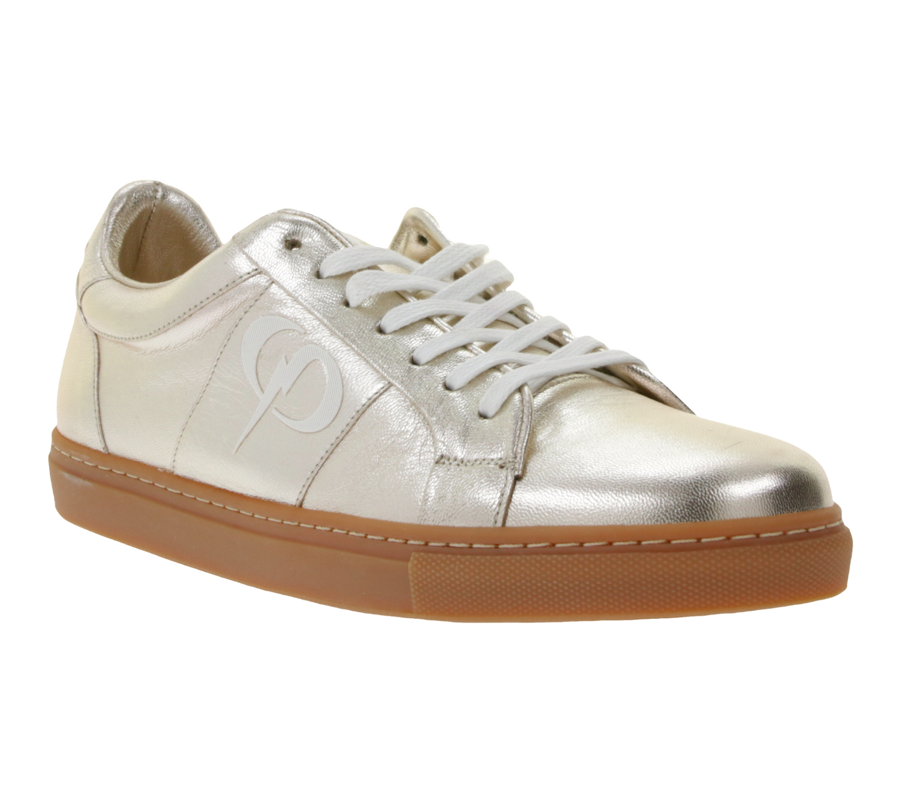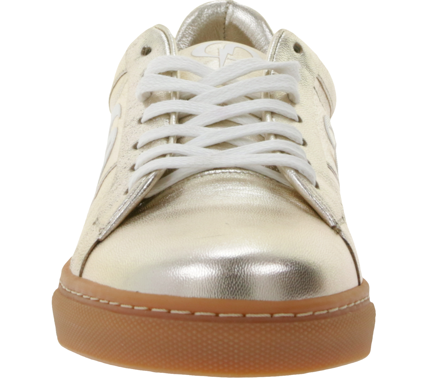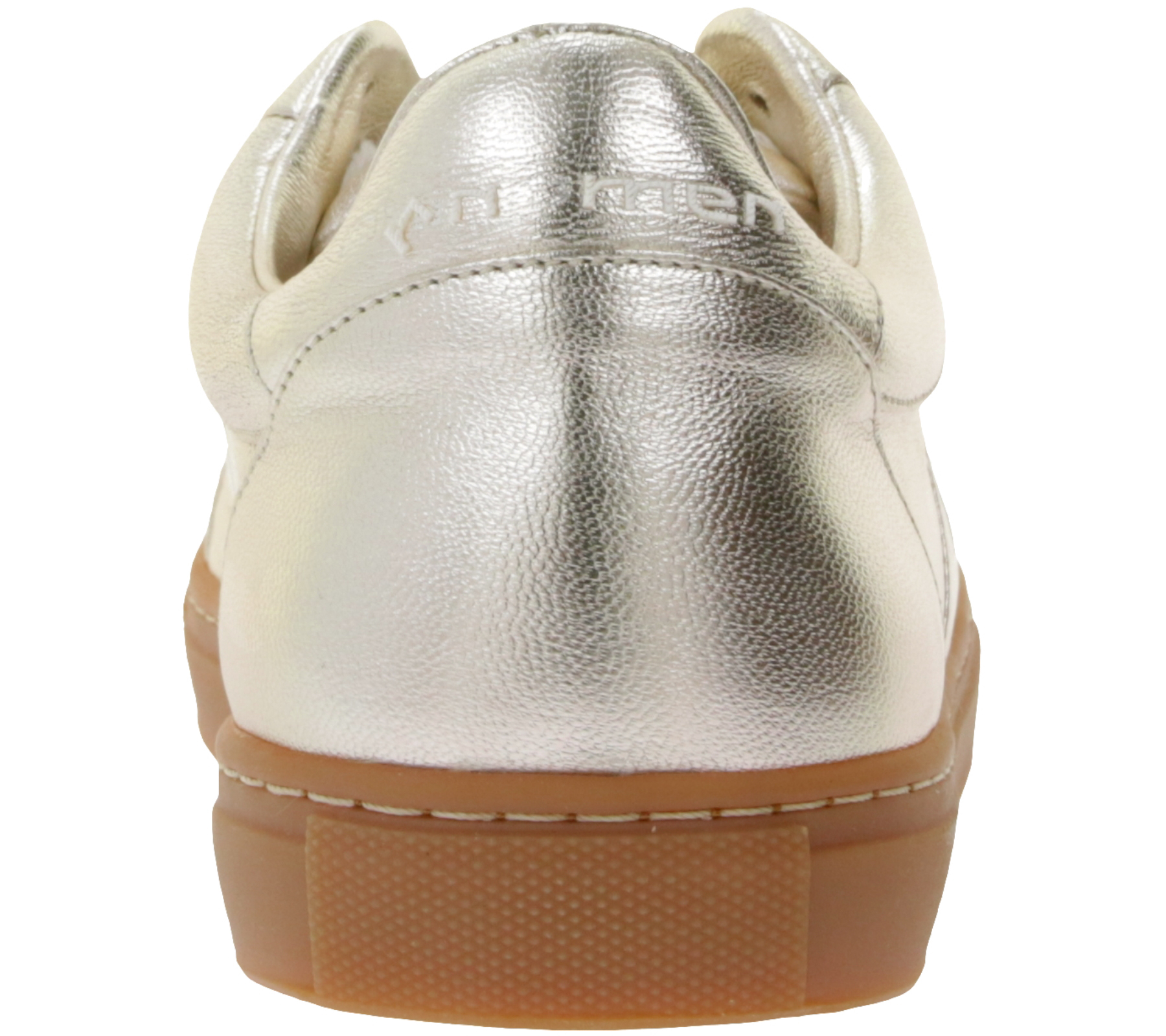PHINOMEN Damen Sneaker Handarbeit Made in Portugal mit auffallendem Glanzeffekt Echtleder-Schuhe Champagne