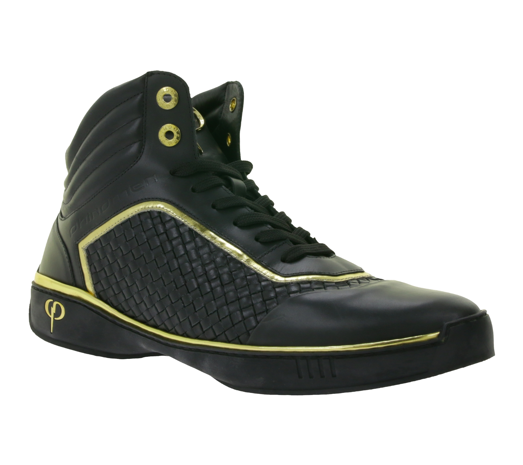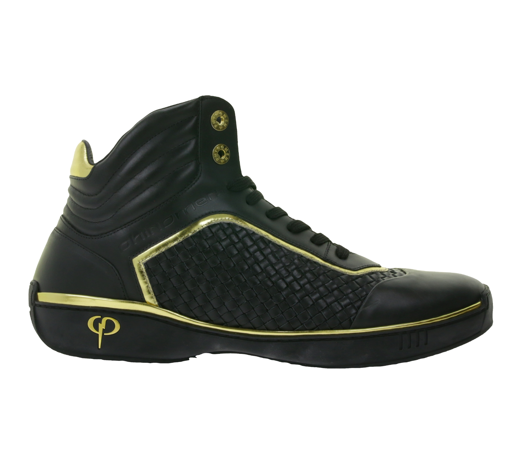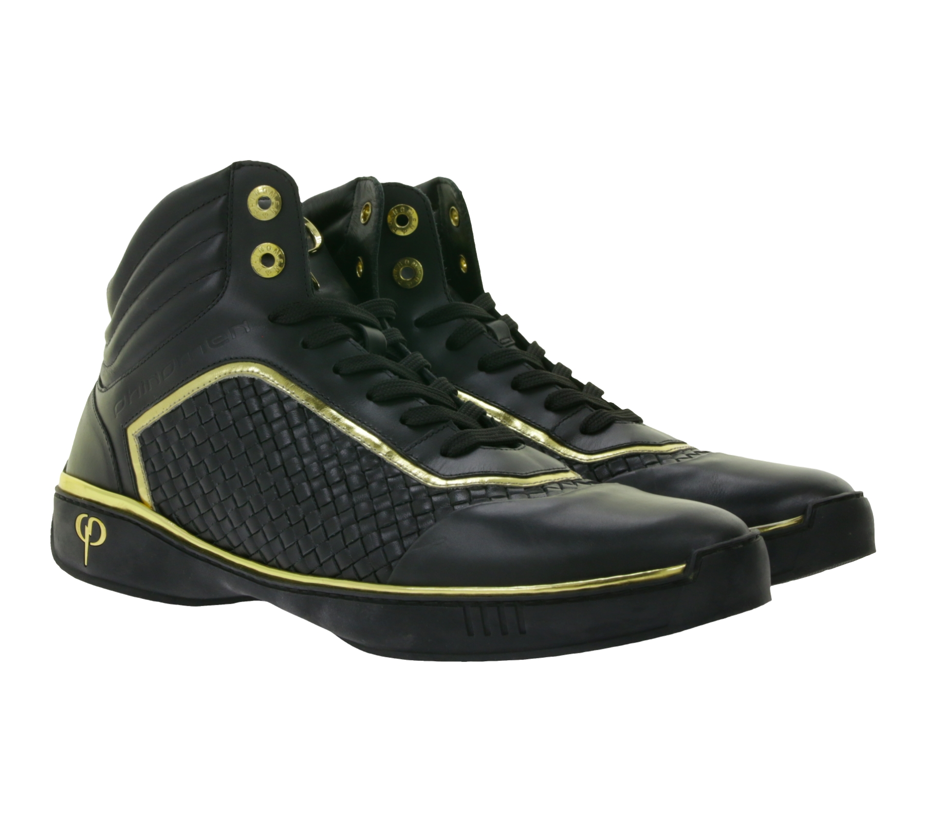 PHINOMEN Damen und Herren Luxus Sneaker Made in Italien Handarbeit Echtleder-Schuhe Schwarz/Gold