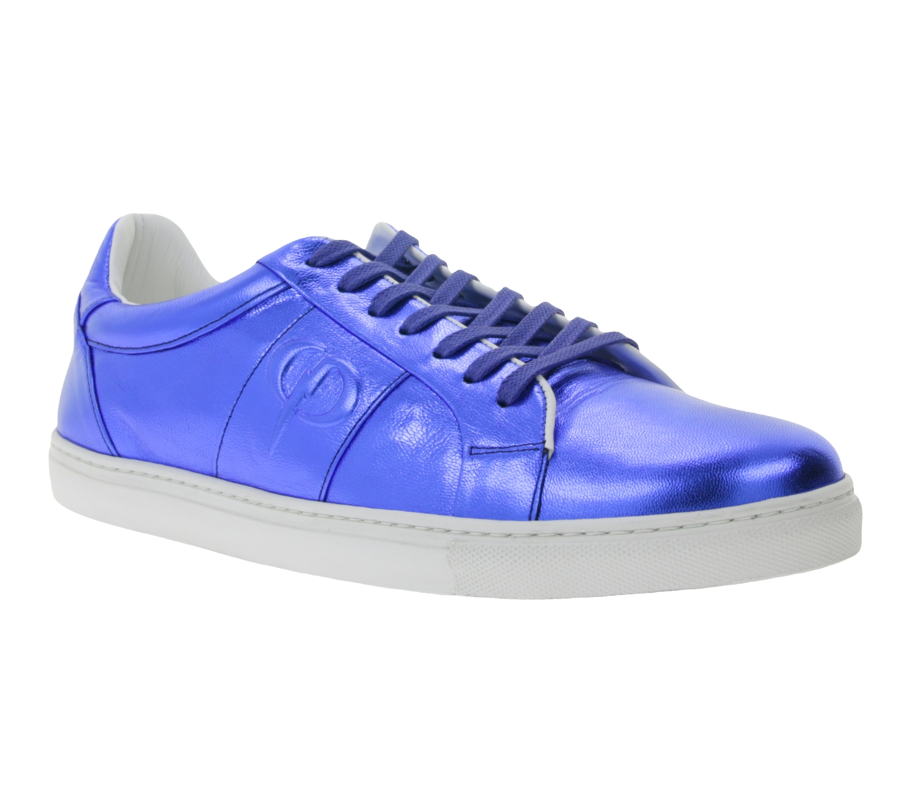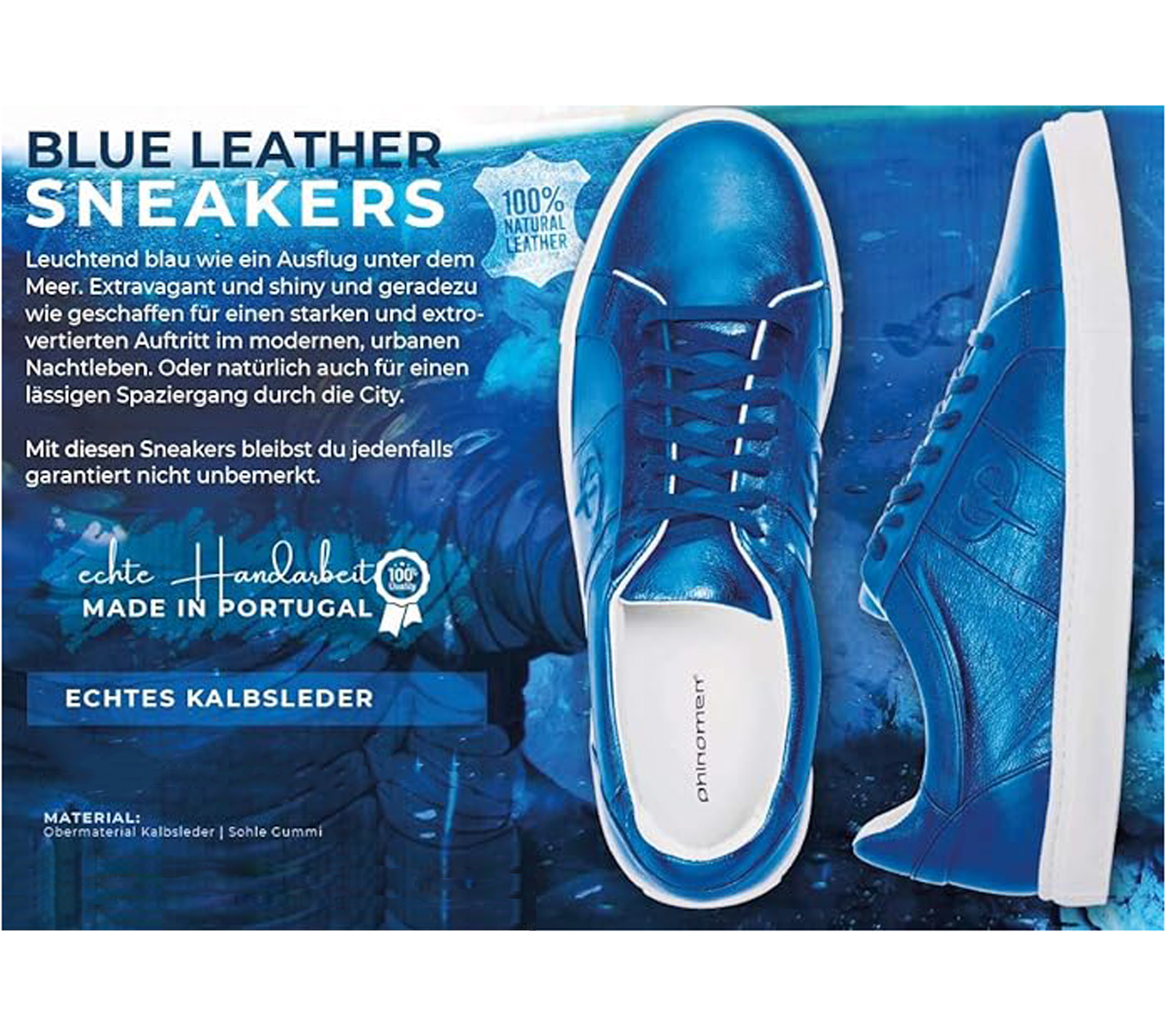 PHINOMEN Herren Sneaker Handarbeit Made in Portugal mit auffallendem Glanzeffekt Echtleder-Schuhe Blau