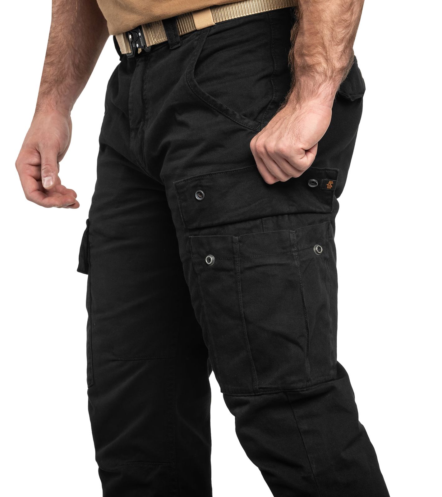 praktische ALPHA INDUSTRIES Agent Herren Cargo-Hose mit 6 Taschen Baumwoll-Hose 158205 Schwarz
