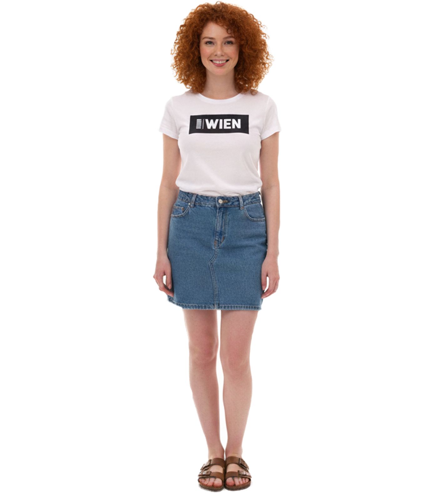 PUMA City Damen Baumwoll-Shirt mit Praha/Prag, Paris, Wien oder Madrid Schriftzug Kurzarm-Shirt Rundhals-Shirt 575957 Weiß oder Schwarz