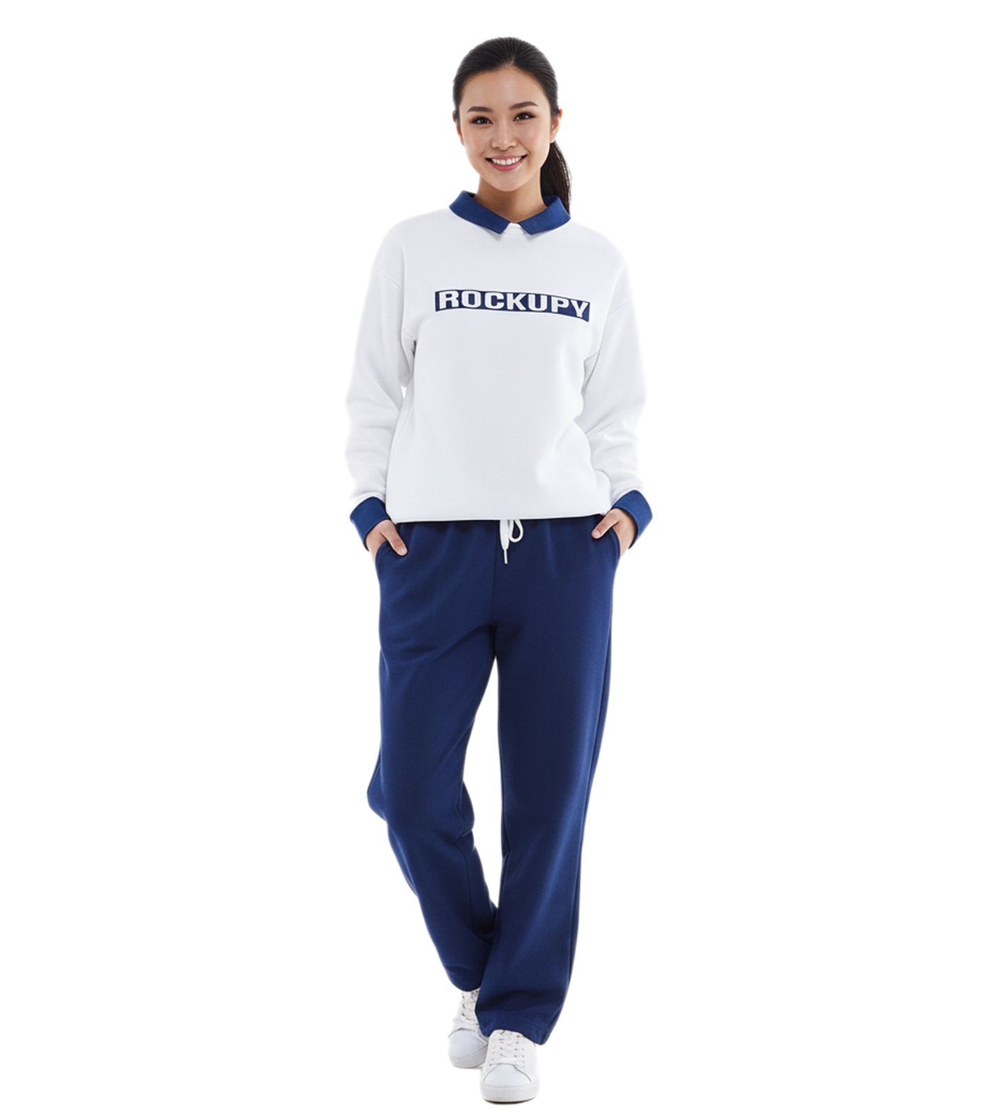ROCKUPY Damen Sweatshirt Baumwoll-Shirt Winter-Sweater mit Logo-Stickerei RPW20_040302 001 Weiß