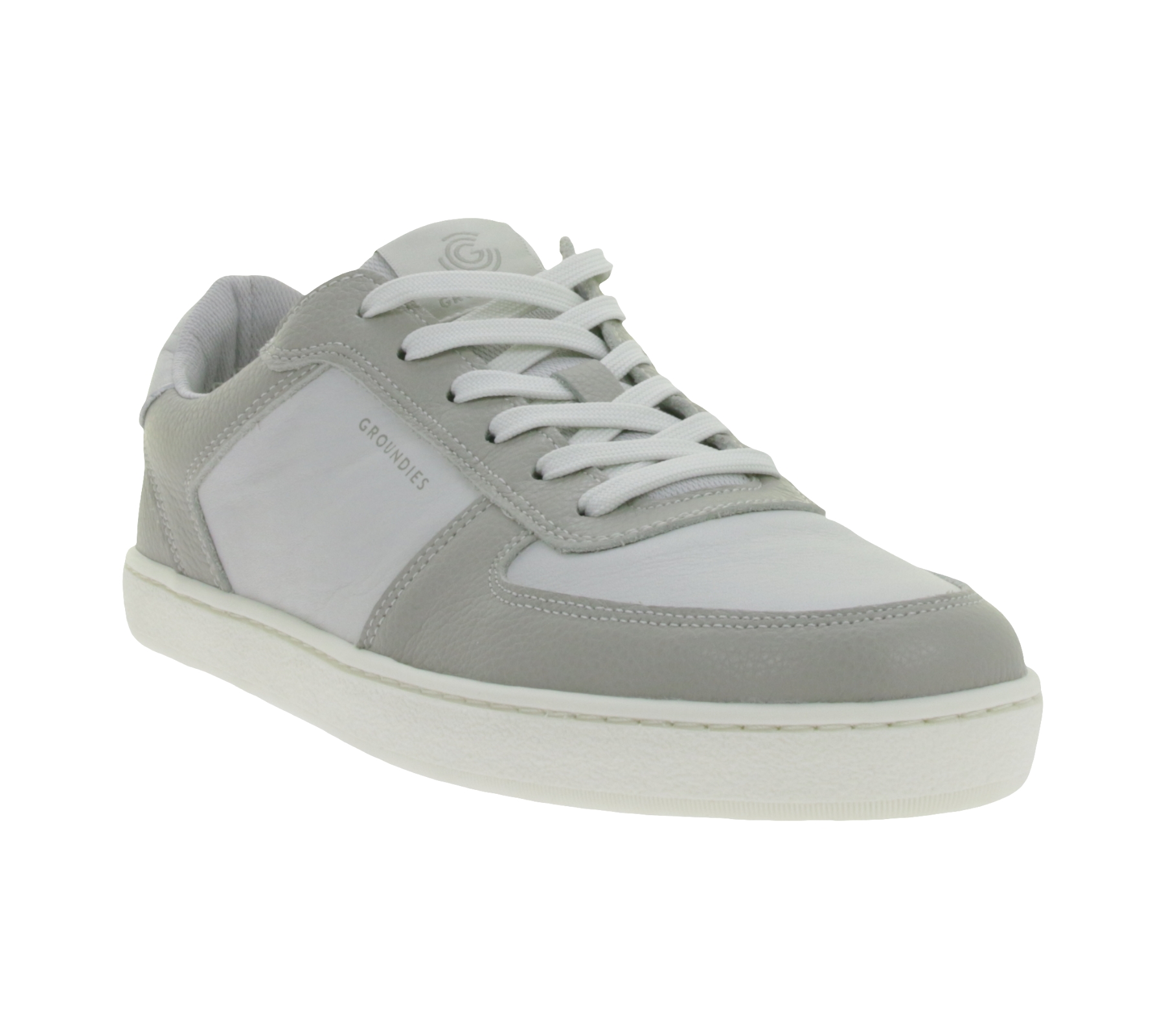 sportliche GROUNDIES Barfußschuhe Hamptons 2.0 Herren Low-Top Echtleder Sneaker mit TrueSense Sohle Schnür-Schuhe GND-210256-30 Weiß/Grau