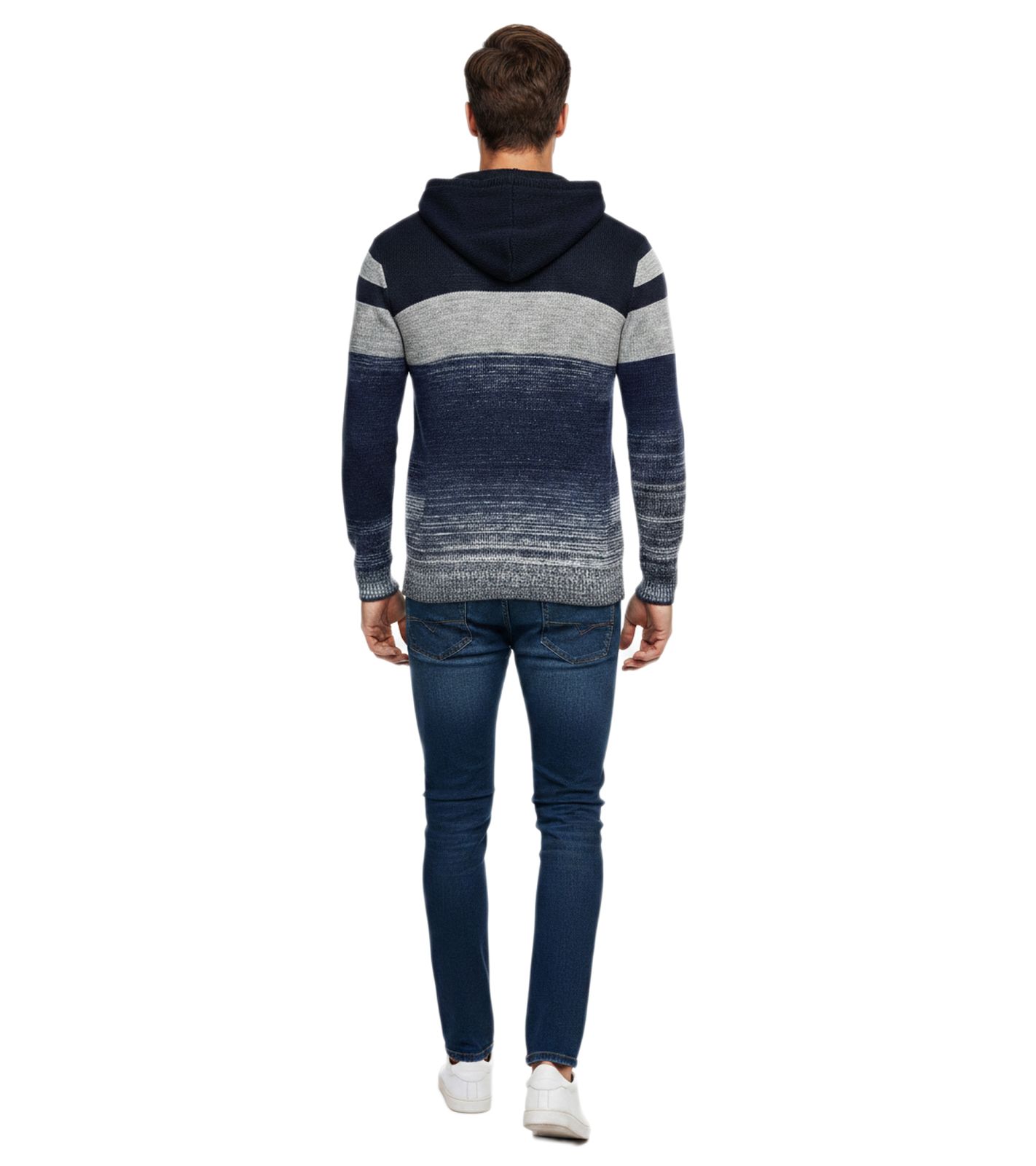 Sportlicher Herren Strick Kapuzen-Pullover im Colorblock Design Sweater mit Kängurutasche Hoodie 13311 Marine
