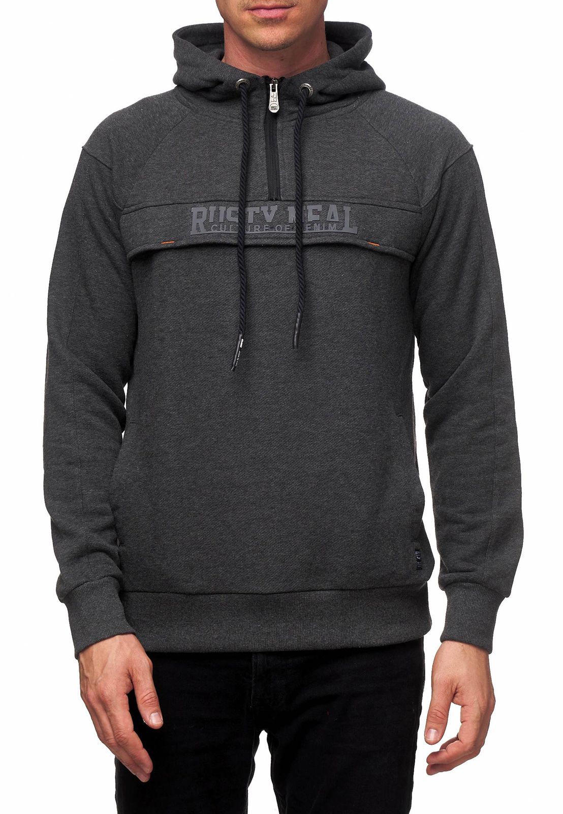 Sportlicher Hoodie für Herren Kapuzen-Pullover mit Marken-Schriftzug auf lässigem Frontdetail Sweater Sweatshirt 19150 Anthrazit Melange