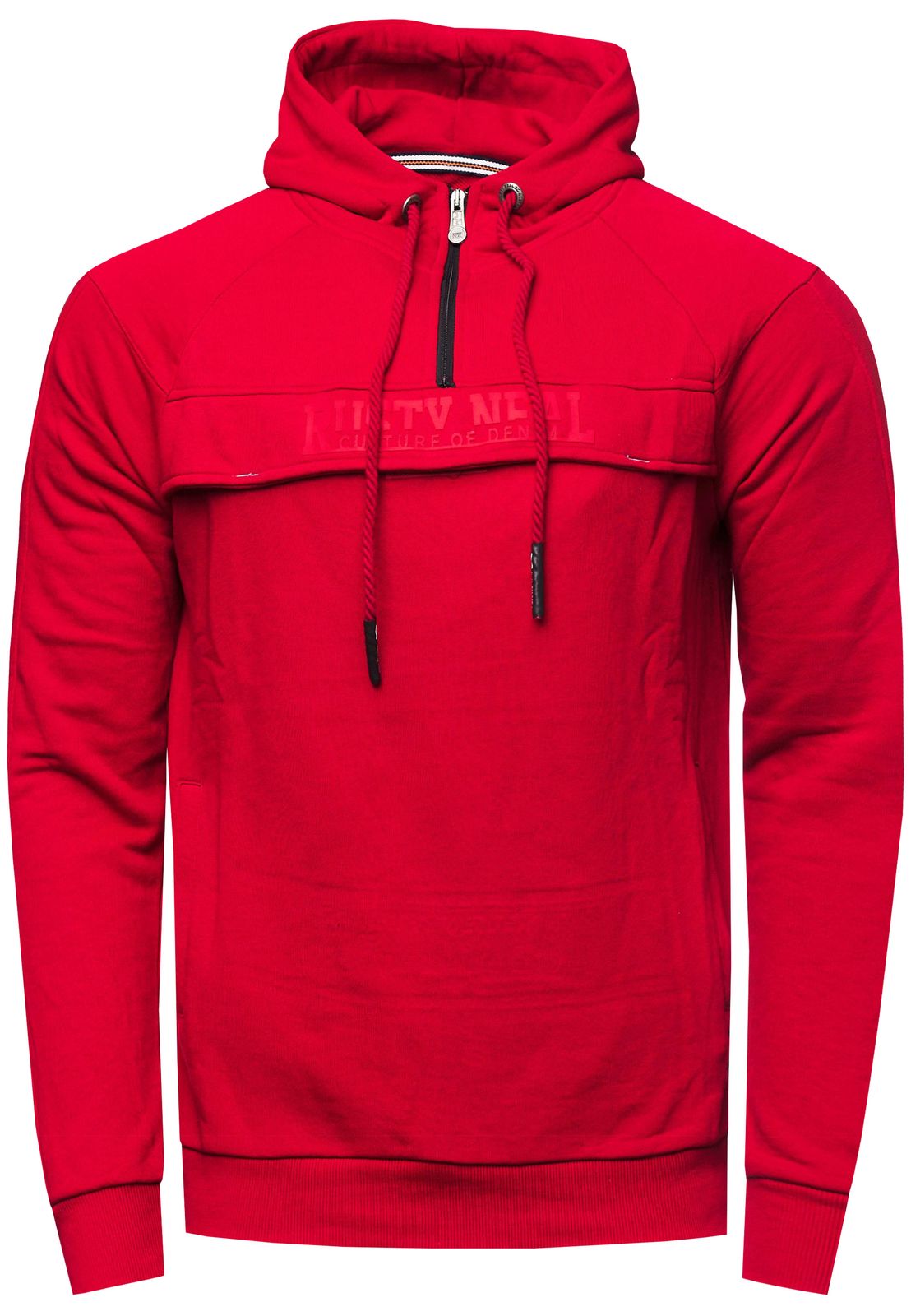 Sportlicher Hoodie für Herren Kapuzen-Pullover mit Marken-Schriftzug auf lässigem Frontdetail Sweater Sweatshirt 19150 Rot