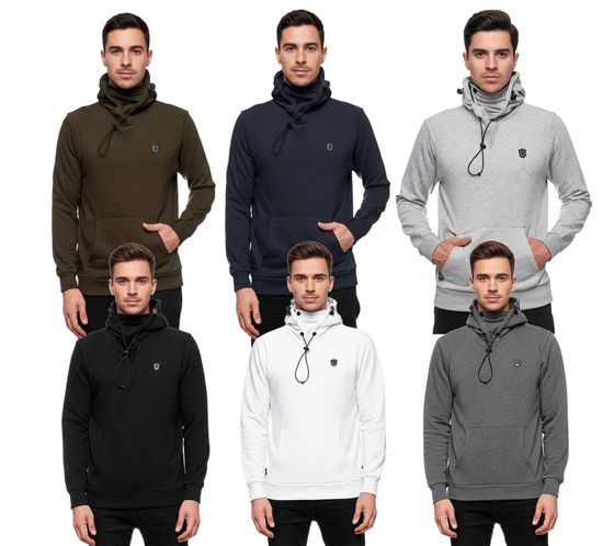 Sportlicher Hoodie für Herren mit cooler Kapuze Sweater Kapuzen-Pullover 19140 in Schwarz, Khaki, Grau, Blau, Weiß