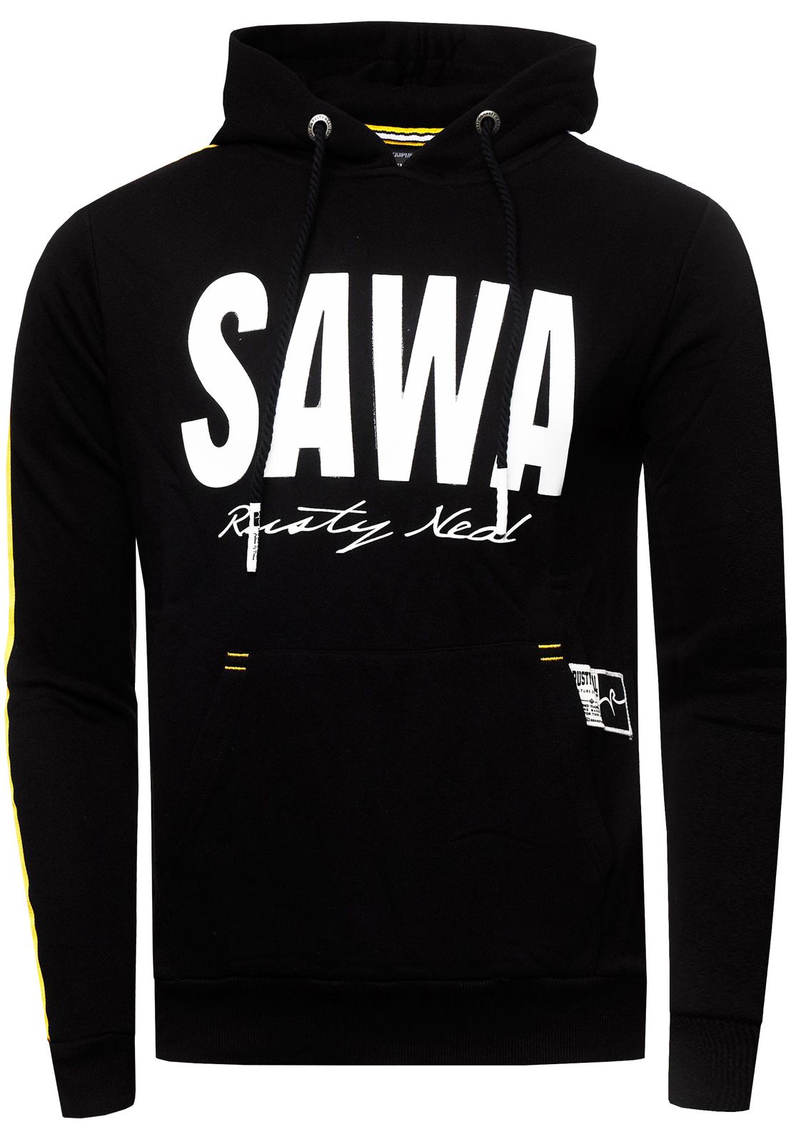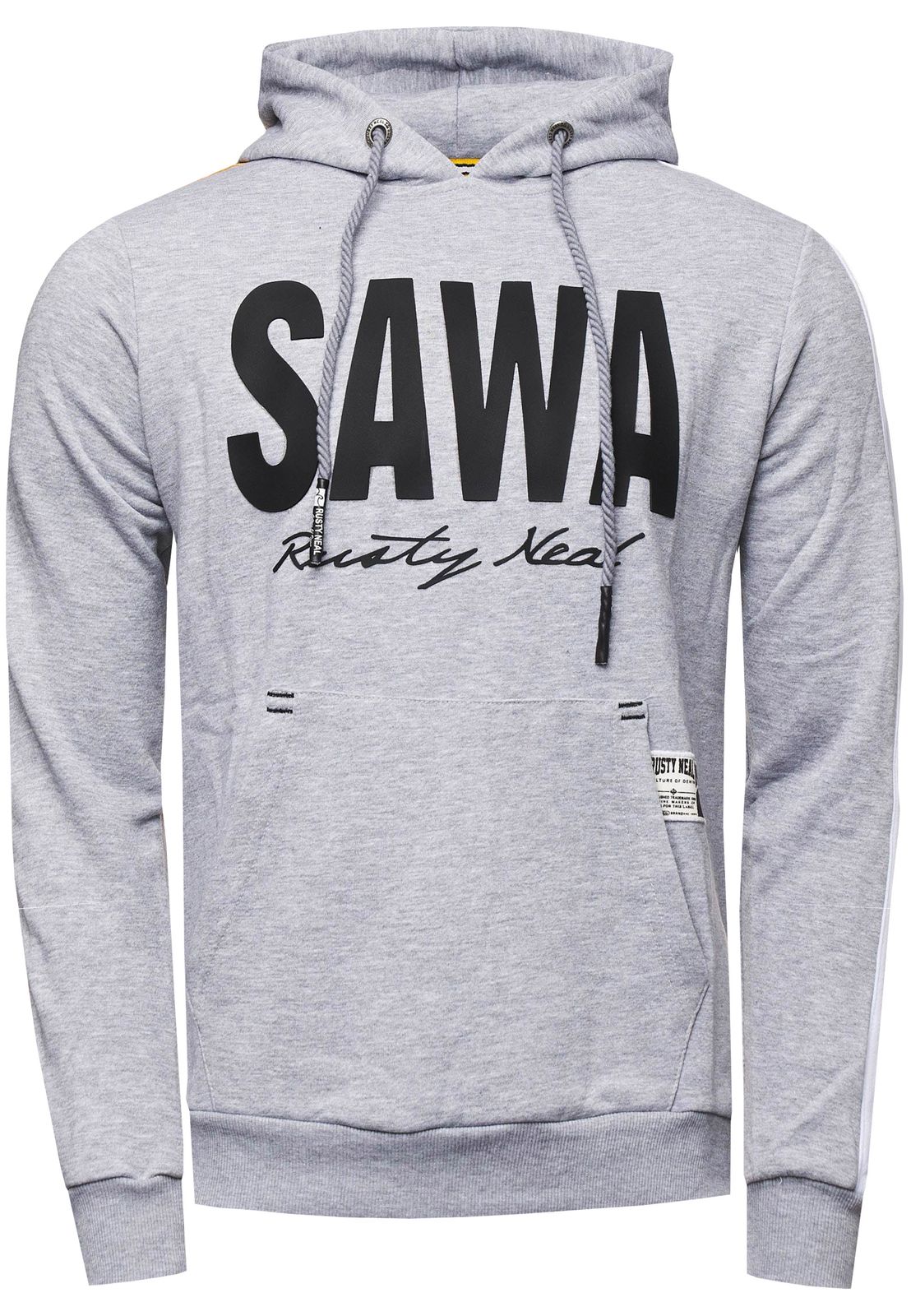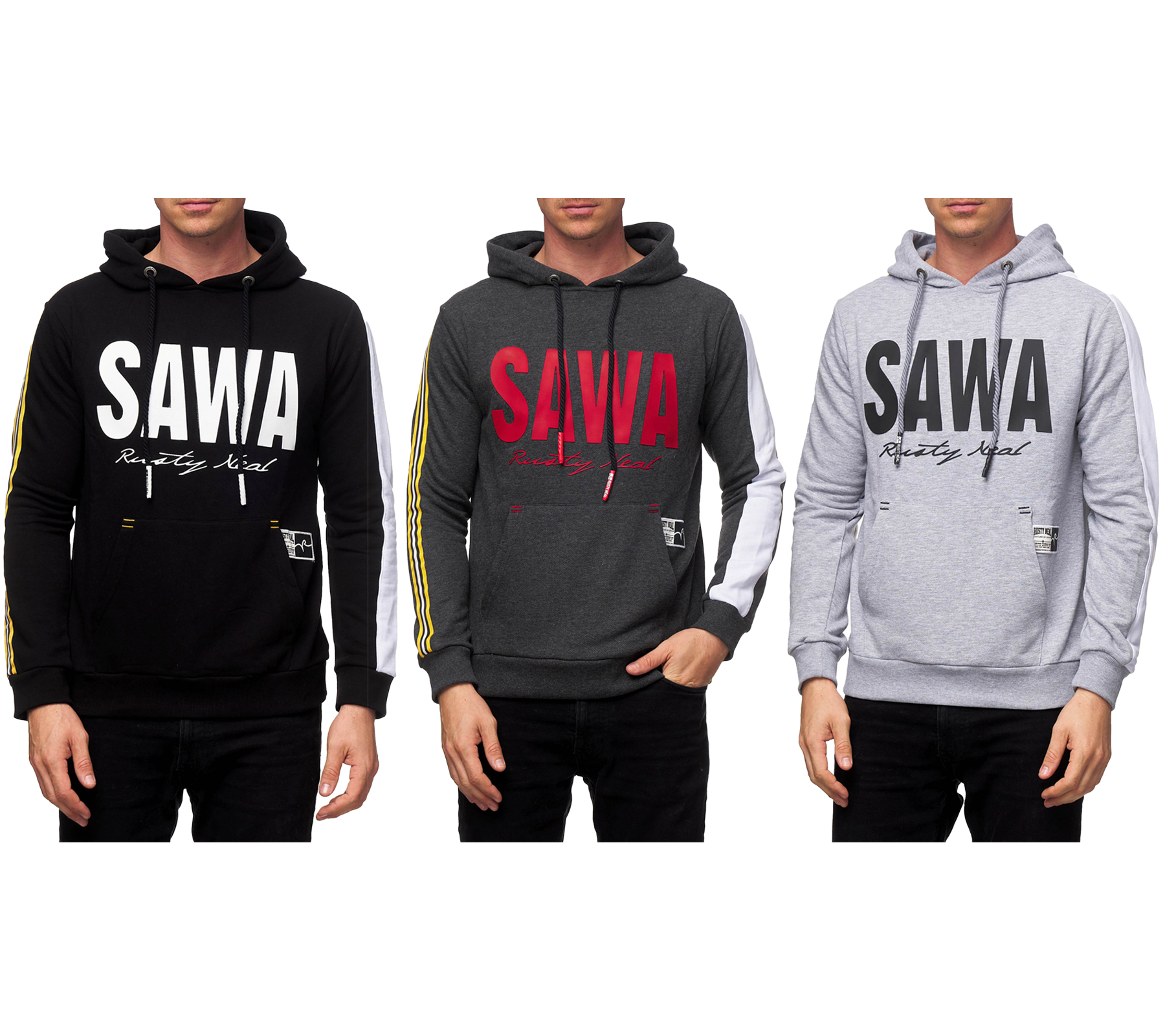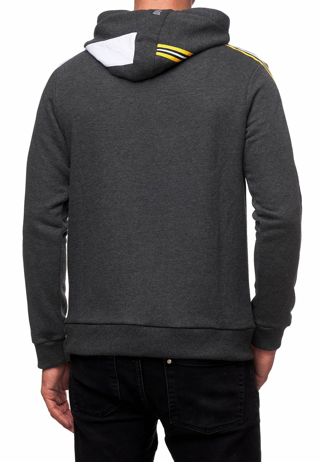 Sportlicher Kapuzen-Sweater für Herren mit großem Print und Schriftzug auf der Front Hoodie Pullover 19154 in Schwarz, Anthrazit oder Grau