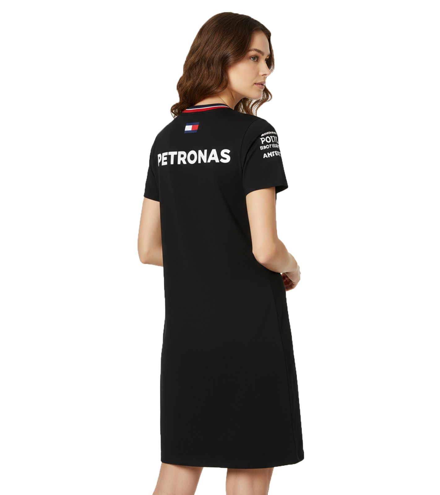 sportliches Mercedes-Benz AMG Petronas Damen Kleid mit Team- und Sponsoren-Logos Baumwoll-Kleid 701227958 001 Schwarz