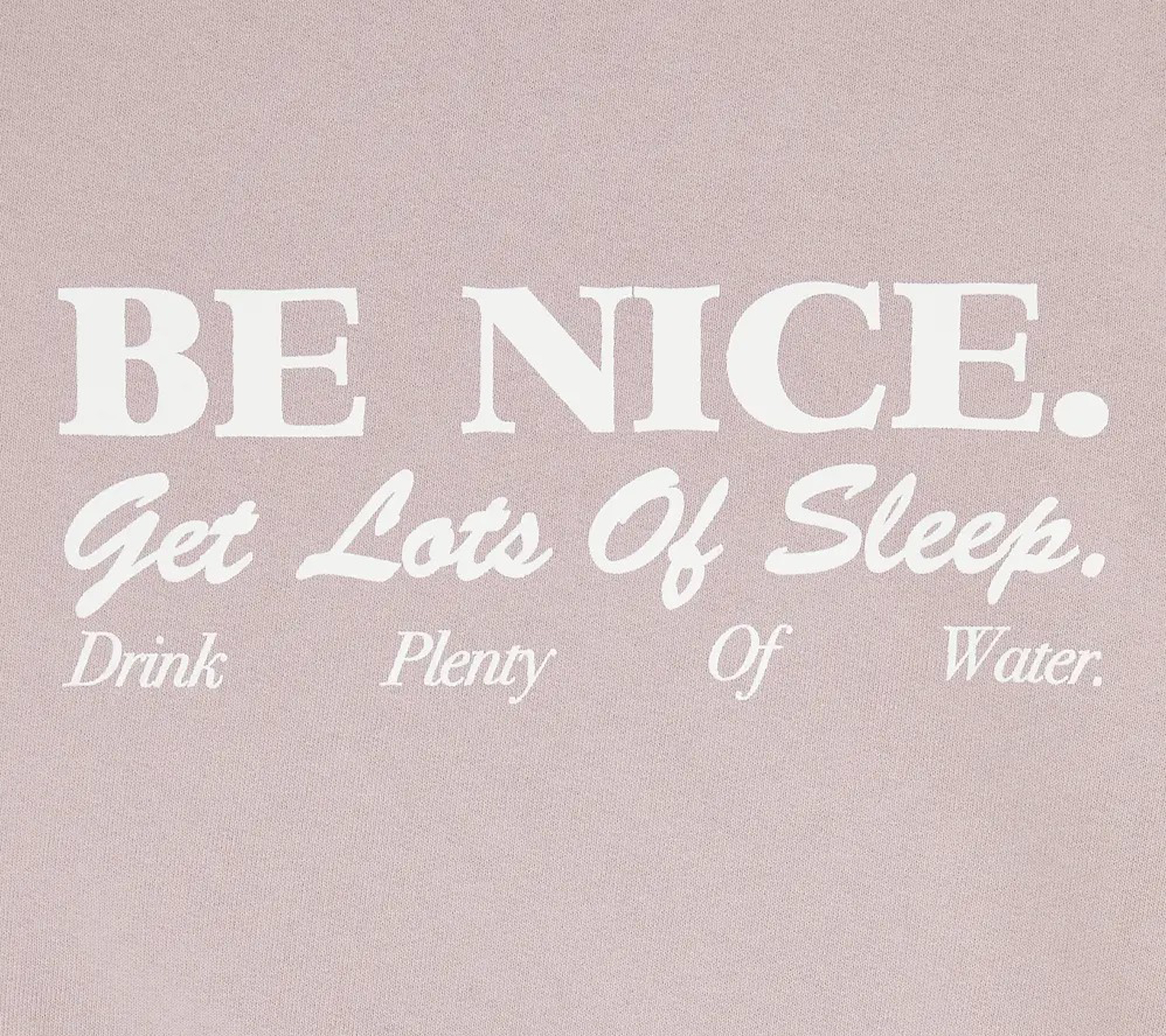 Hochwertiges Sweatshirt von Sporty & Rich in Fondant/White mit markantem „Be Nice“ Print. Gefertigt in den USA aus 100 % Baumwolle mit Fleece‑Back Jersey für maximalen Komfort – der perfekte Premium Alltagsbegleiter.