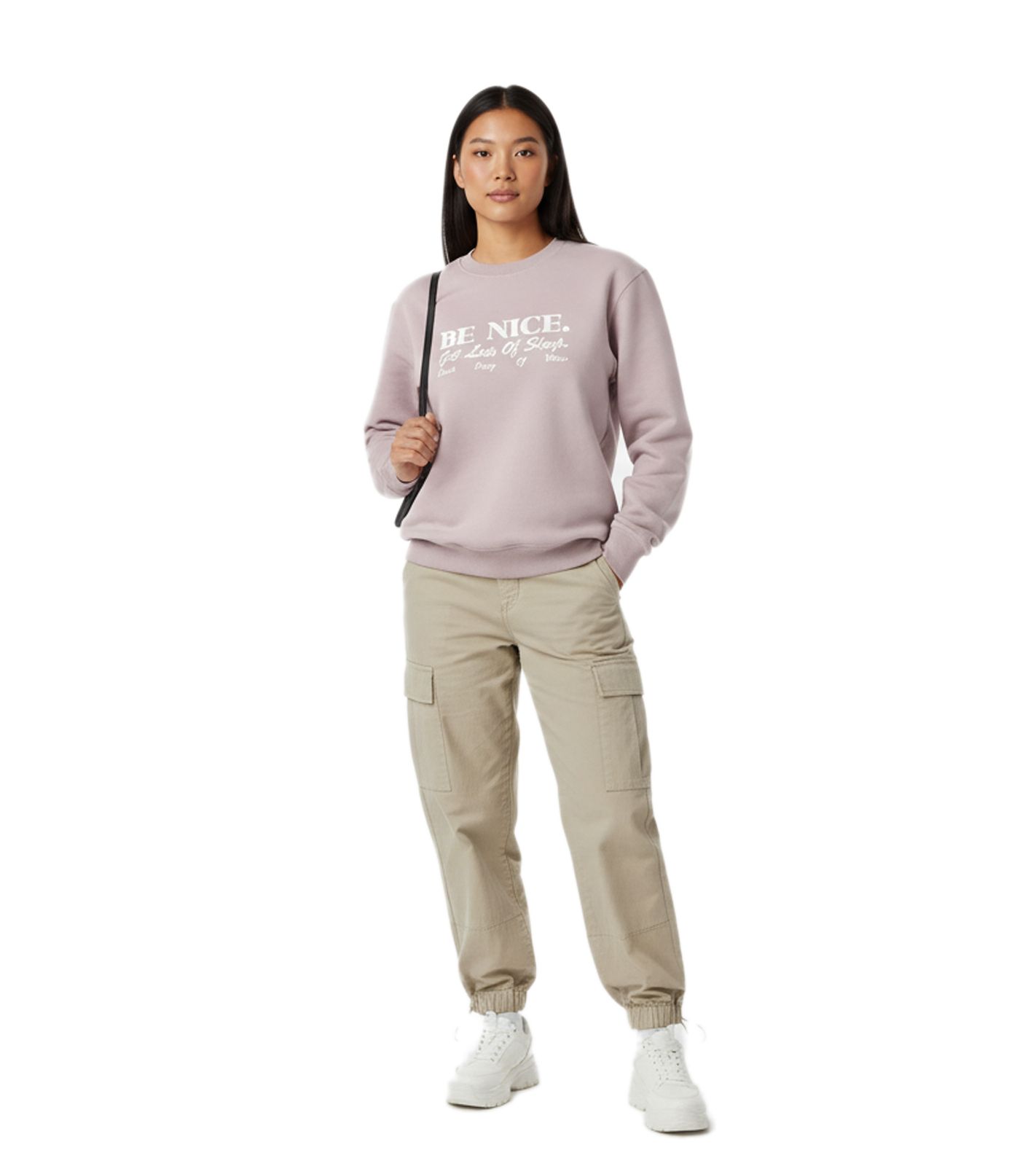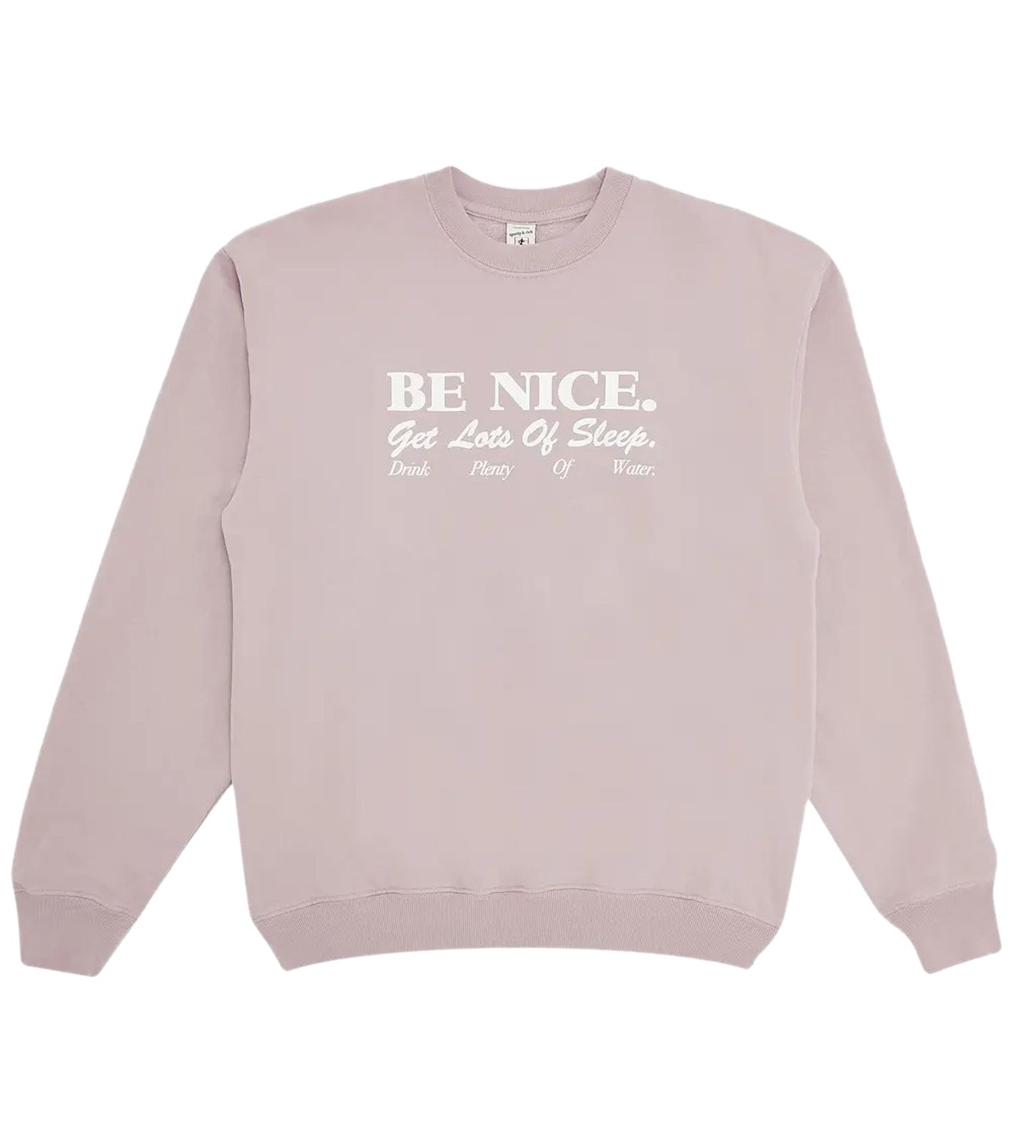 Sporty & Rich Unisex Luxus Sweatshirt Be Nice Crew Sweat – Zartrosa/Weiß