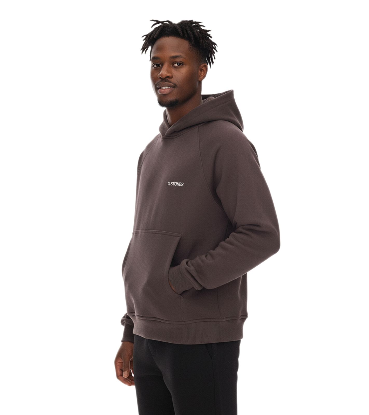 STONES Herren Hoodie moderner Baumwoll-Pullover Kapuzen-Pullover mit Logo-Stick Oversized-Fit 400gsm Dunkel-Braun