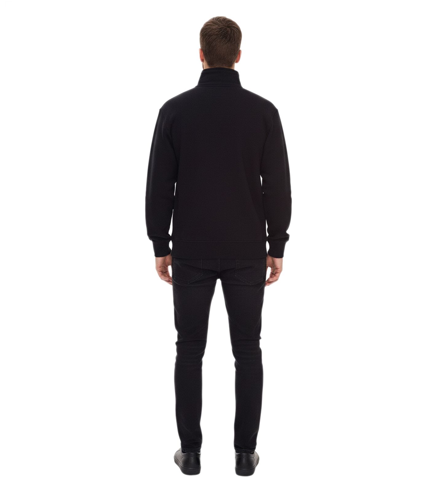 STONES Herren Pullover Oversized-Zipper moderner Baumwoll-Zipper Troyer 400gsm mit Stehkragen mit Logo-Stickerei Schwarz