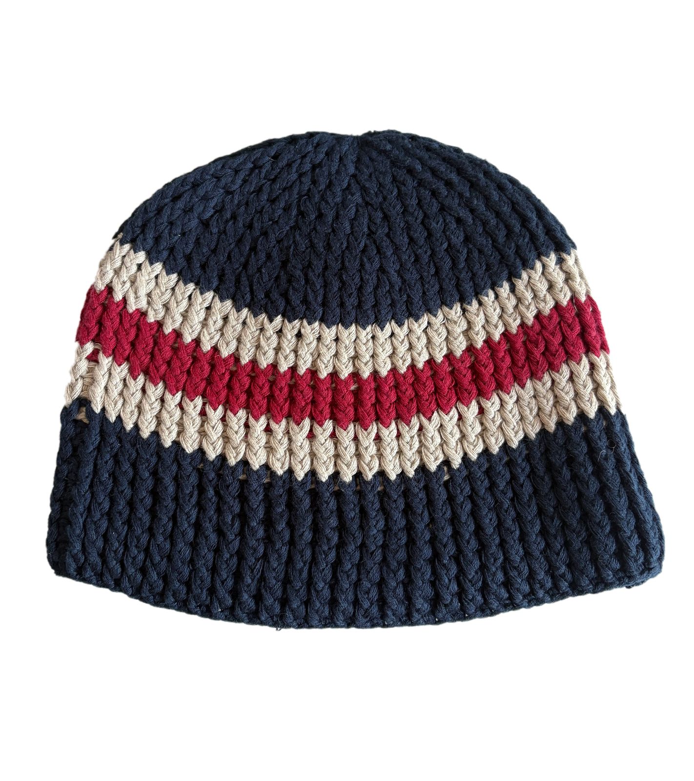 Stylische Häkel-Mütze Winter-Mütze weiche Strick-Mütze mit Streifen Baumwoll-Mütze 7314GUY Navy/Weiß/Rot